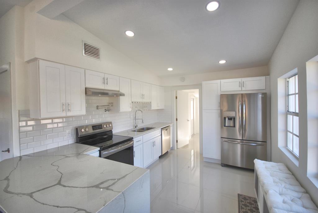 Shine On You Crazy Diamond! This hip and trendy East Boca home is a true diamond. Exceptionally modern and spacious there was a complete remodel of this home. This East Boca home is just 2.8 miles to the beach at Spanish River Park and 2.4 miles to Florida Atlantic University. Enjoy a night on the town in Mizner, it's just 3.7 miles door to door and only 4.2 miles to downtown Delray Beach. Along with the stylish front entry upgrades include an entirely brand new sparkling white kitchen including quartz countertops with dramatic grey veins, porcelain flooring throughout the living areas and laminate in the bedrooms, new cabinetry, sinks, faucet including pasta arm, subway tile backsplash, LED lighting, appliances including washer and dryer, ceiling fans with remotes, and interior doors.