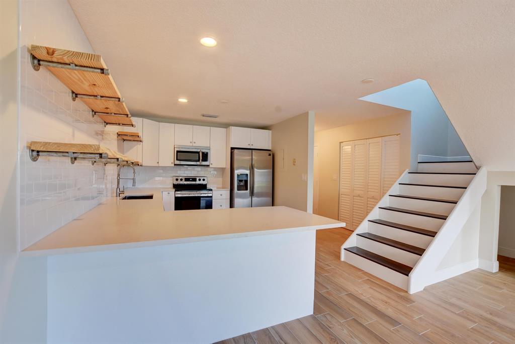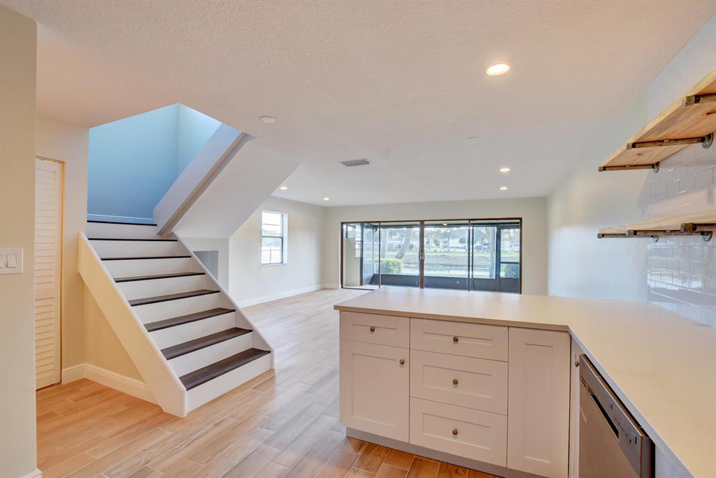 This absolutely exquisite corner unit waterfront townhouse will take your breath away the minute you walk in. No expense spared while remodeling this home and the roof is BRAND NEW with NEW hurricane impact skylights, completed 11/2018. Top to bottom, this home has been professionally renovated including new Samsung appliances, tile and upgraded laminate throughout, recessed lighting, upgraded bathrooms, quartz countertops and so much more. Tons of natural light come in from it being the corner unit and having 4 skylights. Enjoy the biggest yard in Boca Barwood and the Gufstream water view. A rare opportunity to move into a home that shows and feels like new construction in a very sought after neighborhood in Boca Raton with A plus schools. DON'T MISS OUT, THIS HOME WILL SELL by 1/28