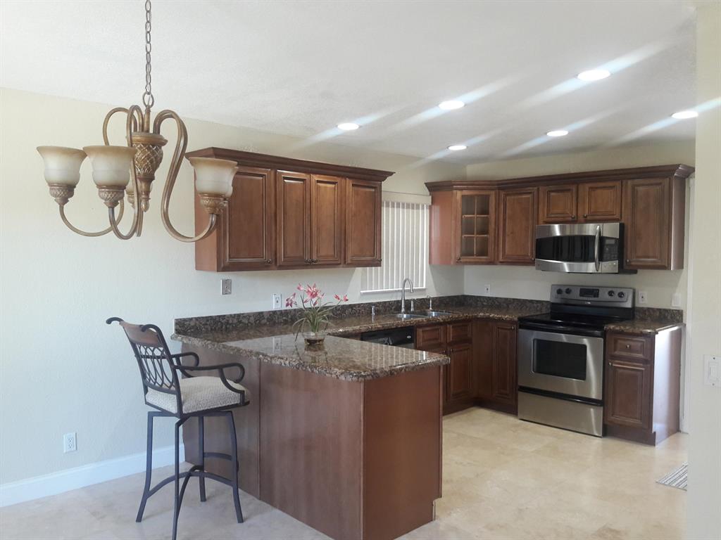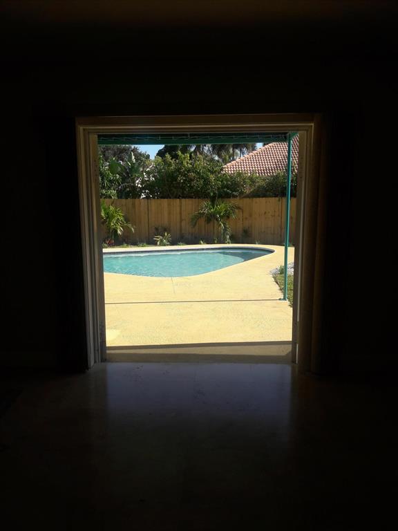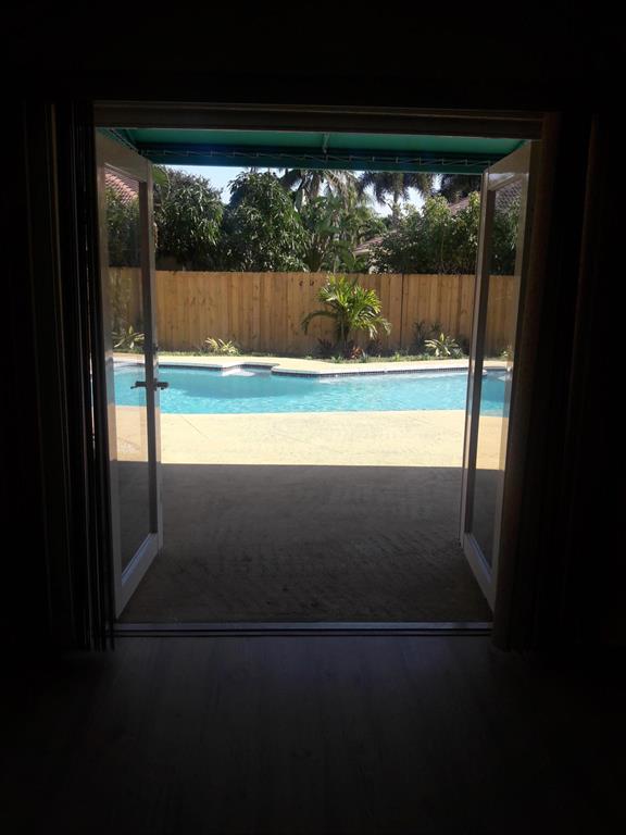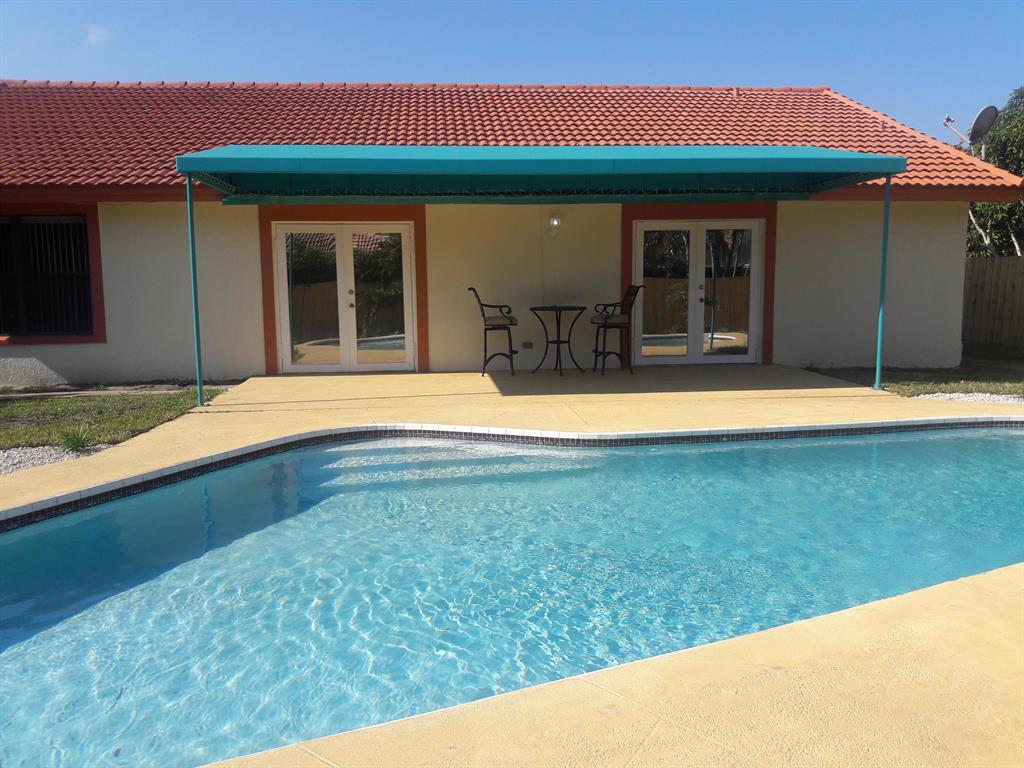 Wonderfully updated pool home with tropical backyard oasis awaits you. Pass thru the french doors to go outdoors in the living room or master suite when you wake in the morning and come home in the evenings. Perfect for entertaining family and friends. Solid CBS construction with a 2 car garage, new AC system and high end fixtures add to the special touches throughout. Perfect for a family and entertaining with granite countertops in the kitchen, wooden cabinets and upgraded appliances. The travertine flooring with special mosaic foyer tiles are sure to impress when guests arrive. Backyard affords a brand new shade awning to enjoy the pool area in comfort. This home does not disappoint. Come and see it today.