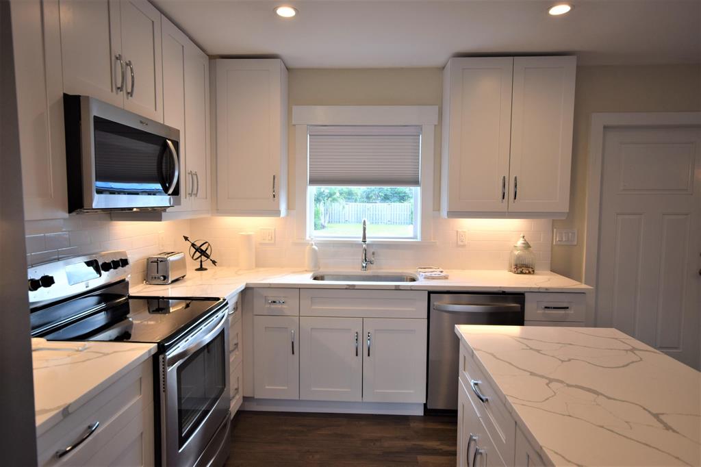 Wow! 3/2/1 home situated on an oversize lot in Villa Rica ! Minutes to Beaches, I95, and Mizner Park. Zoned for A-Rated Boca schools! This home was just completely remodeled with high end modern finishes and farmhouse style fixtures. New roof and impact windows, new AC ducting, and new electric. Bright and open layout with wood look vinyl flooring throughout. White island kitchen with ample storage, tile back splash, and stainless steel appliances. Split bedroom floor plan with ample closet space throughout. Very large yard with plenty of room for a pool and large work shed.