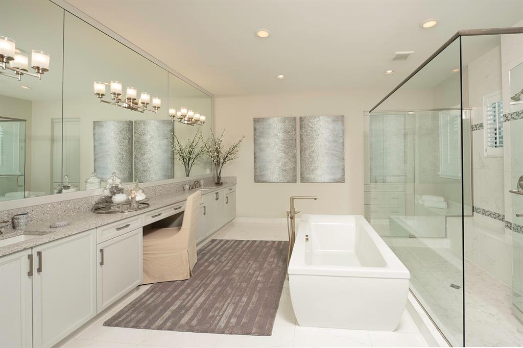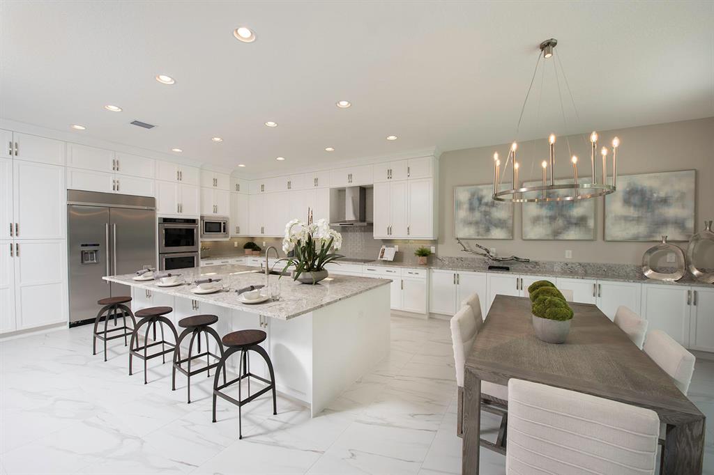 Featuring 5,752 SF of living space, this highly upgraded and semi furnished home is ready for IMMEDIATE occupancy. The designer kitchen includes Ebony Ash cabinets with stacked upper cabinets and pot and pan drawers under cooktop. The countertops will be Eggshell granite with a glass tile backsplash. The appliances are all stainless steel, including Kitchen-Aid 48'' built-in refrigerator, double oven, microwave, dishwasher, built-in cooktop and chimney style hood vented to exterior. Also, on the main level, a spacious formal dining room, club room, guest bedroom with ensuite bath, and great room add to the spacious feel of the home. The Master Bedroom on the second floor has an amazing Master Bath retreat which includes an upgraded 12 x 24 porcelain tile package, with beautiful wall -->