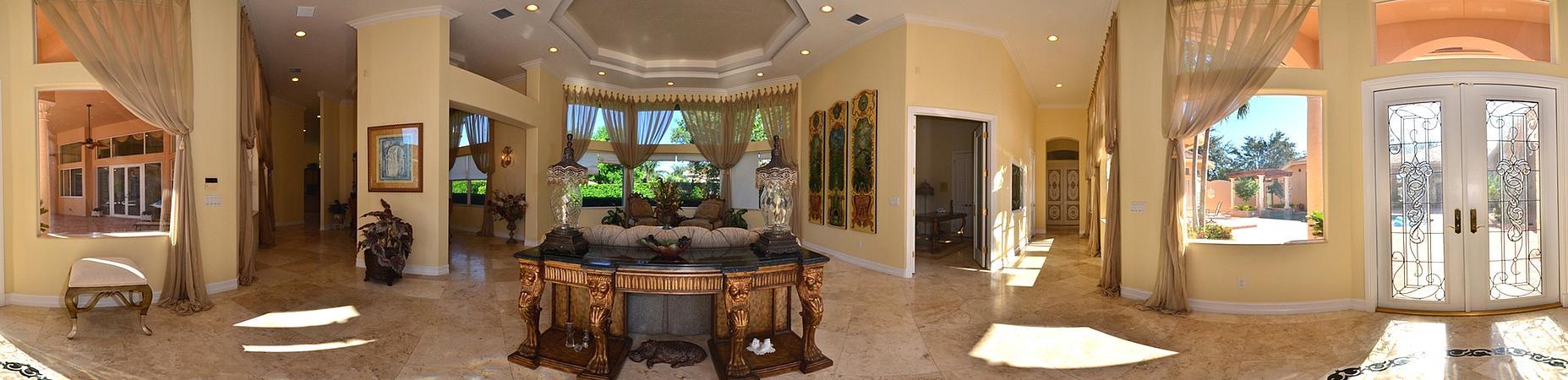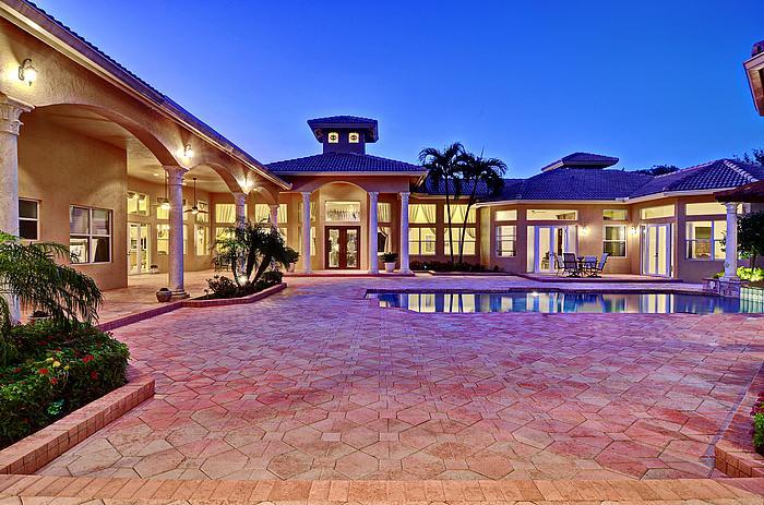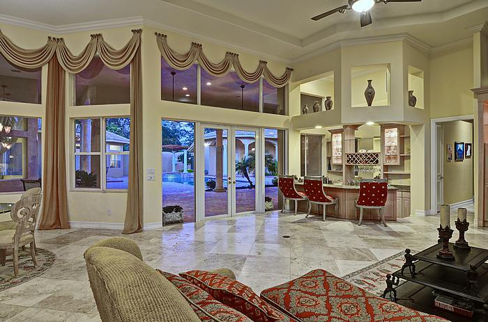 Grand courtyard with over 6170 sq ft of patio area and total living area of 10,457 sq ft. Corner, cul de sac location, double wide porte -cochere plus 4-car side entry garage. 6 Bedrooms and 6.5 baths plus his and hers offices, split bedroom plan with 2nd family room or children's playroom. All bedrooms with private baths. Grand master suite with sitting area and breakfast bar,plus guest house, and outdoor sitting room. Huge kitchen with over-sized center island, and granite counter tops. Marble floors thru-out, extensive architectural detail, High flat ceilings, all 8 ft doors throughout and much more. A must see property that won't disappoint...
