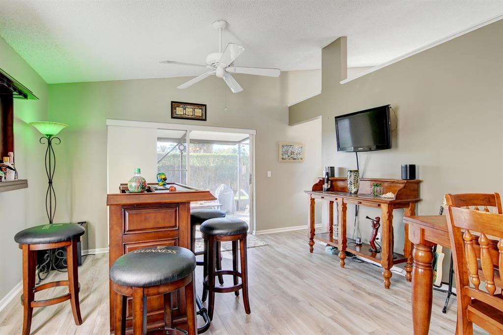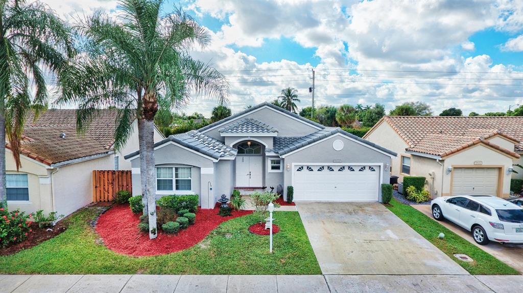 Beautiful Remodel!! These sellers have taken pride in homeownership and it shows! Immaculate,meticulously maintained and tastefully appointed. Practically New Barrel tile roof 2018, Exterior painted a few months ago. AC unit 2017, Water Heater replaced.Super spacious with volume ceilings.Kitchen is renovated with all wood cabinets, granite counters and stainless appliances Updated Bathrooms with new vanities! . Wall to wall stylish wood look laminate flooring...no carpets here! Hurricane shutters, Fully fenced backyard is beautifully landscaped with a storage shed out there too! Covered patio and screen room protects from heat and rain! Low HOA includes cable.Community offers Olympic pool, kiddie pool,tot lot,basketball, racquet ball,tennis, Even has sidewalks thru out the neighborhood!