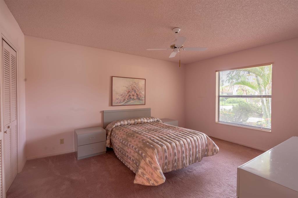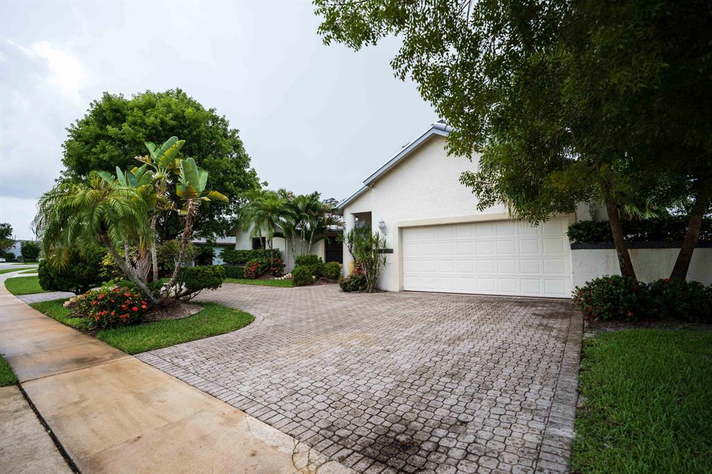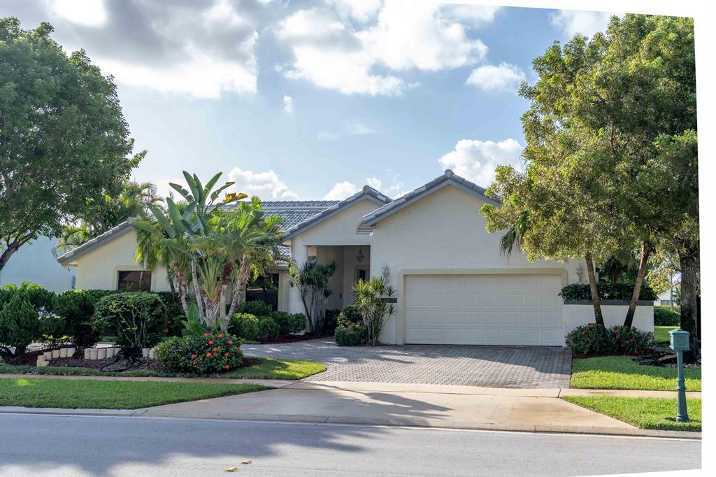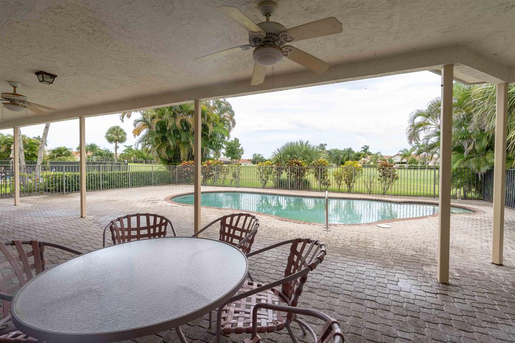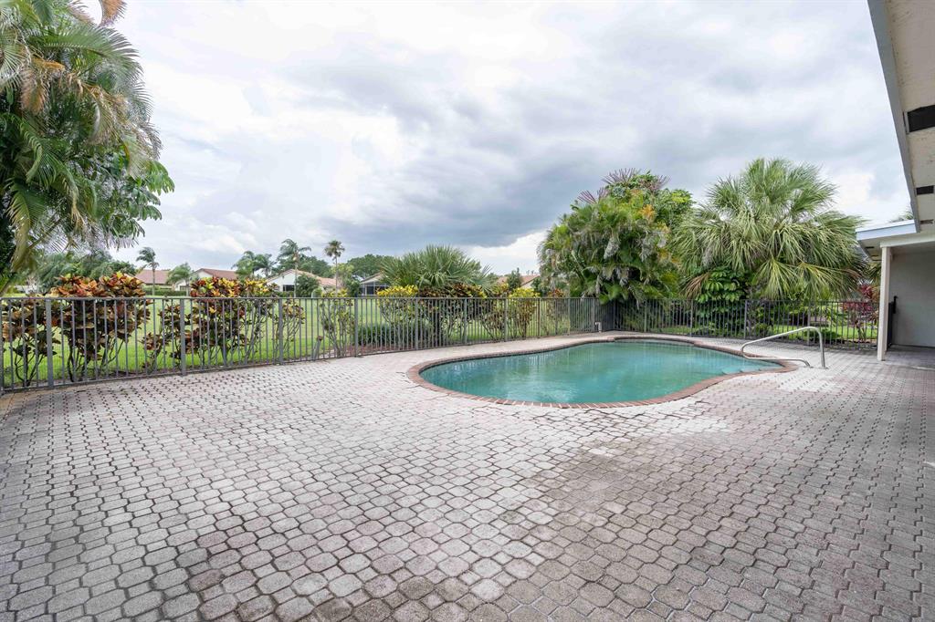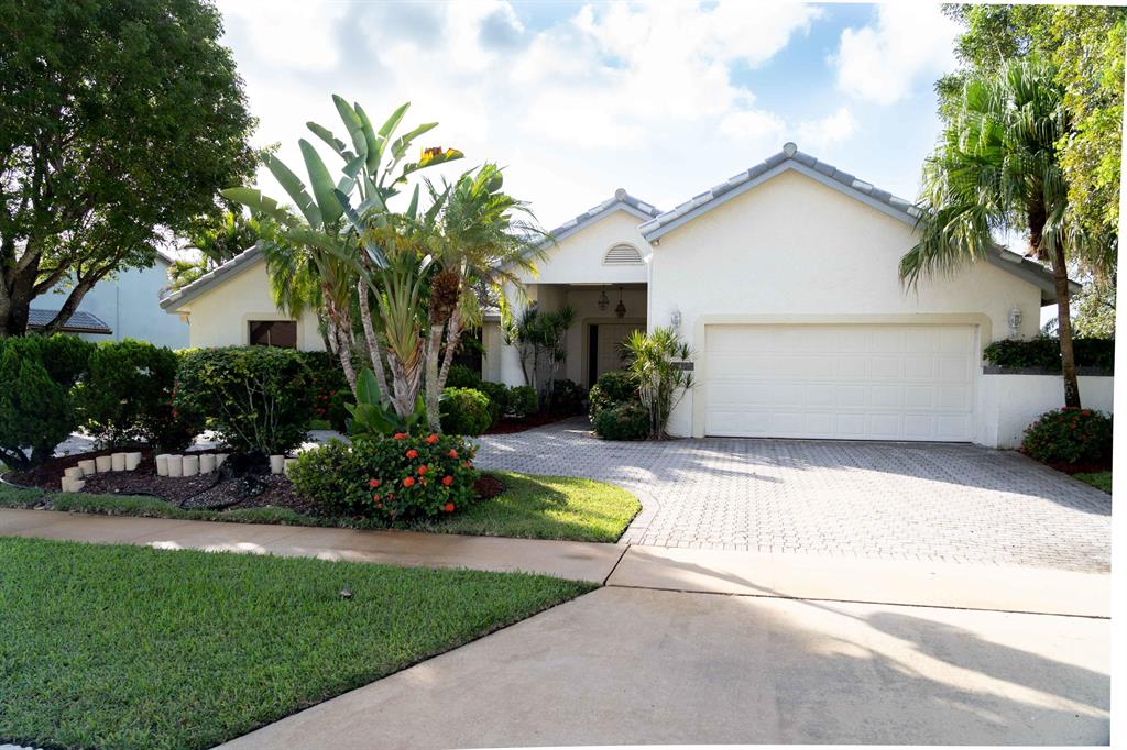 This custom home sits on the 11th hole of the Lakes Golf Course at Boca Woods with a spectacular southern view. It features the desirable split bedroom design with the second and third bedrooms on the east side with a double sink bath and the luxurious master suite on the west. A large walk in closet complements the master bedroom with both a walk in shower and large bath tub.The large patio has a free form pool and an extended roof with an outdoor entertaining area plus a cabana bath with shower. Boca Woods is known for its exceptional club atmosphere with 645 homes. It features two fabulous golf courses, tennis and pickle ball courts and a lively community of neighbors. The club has frequent dinner dances with a wedding like experience and a large dancing floor.
