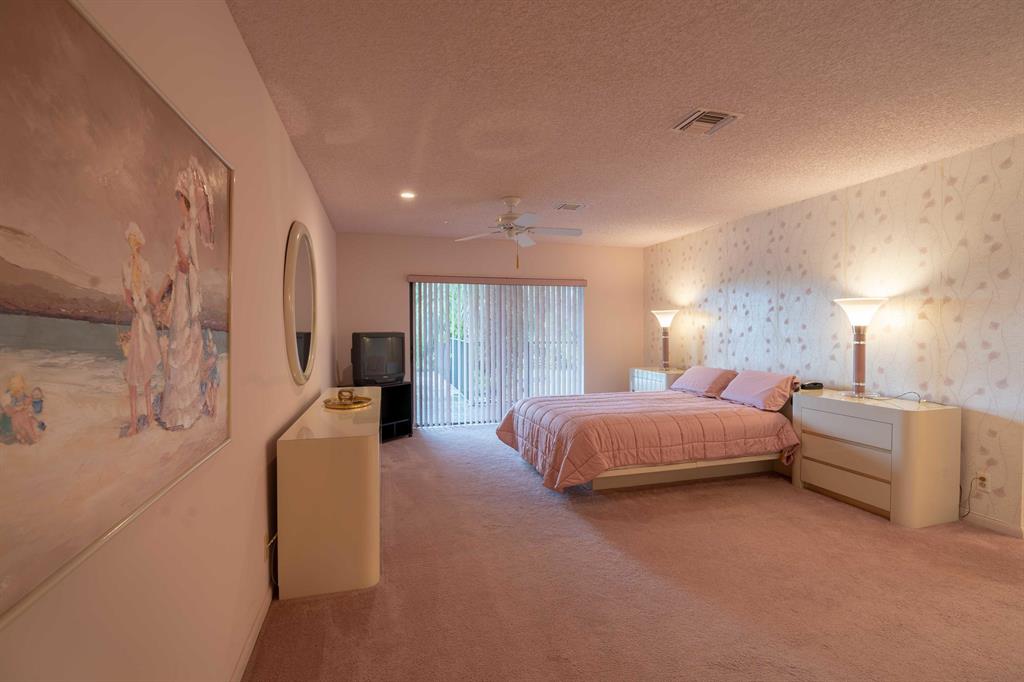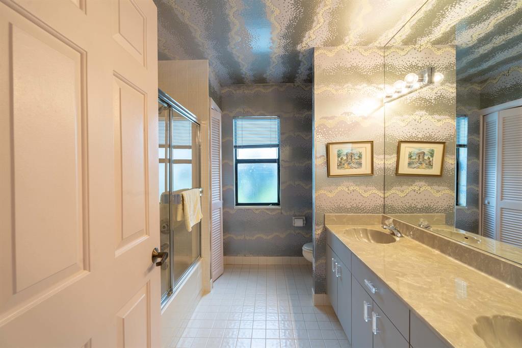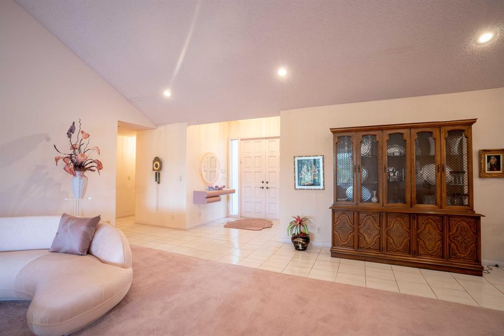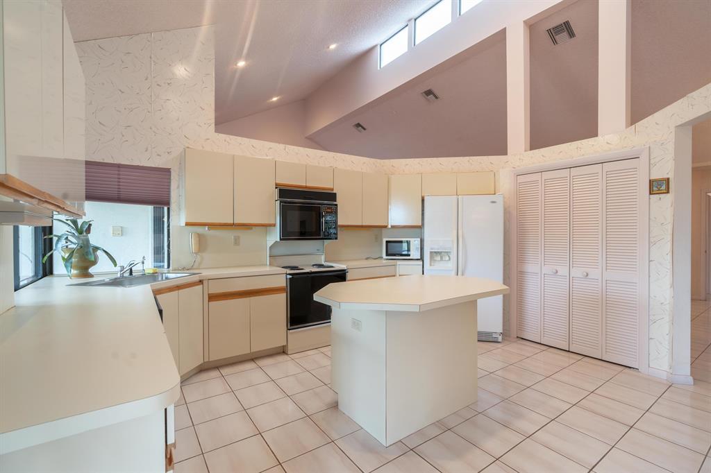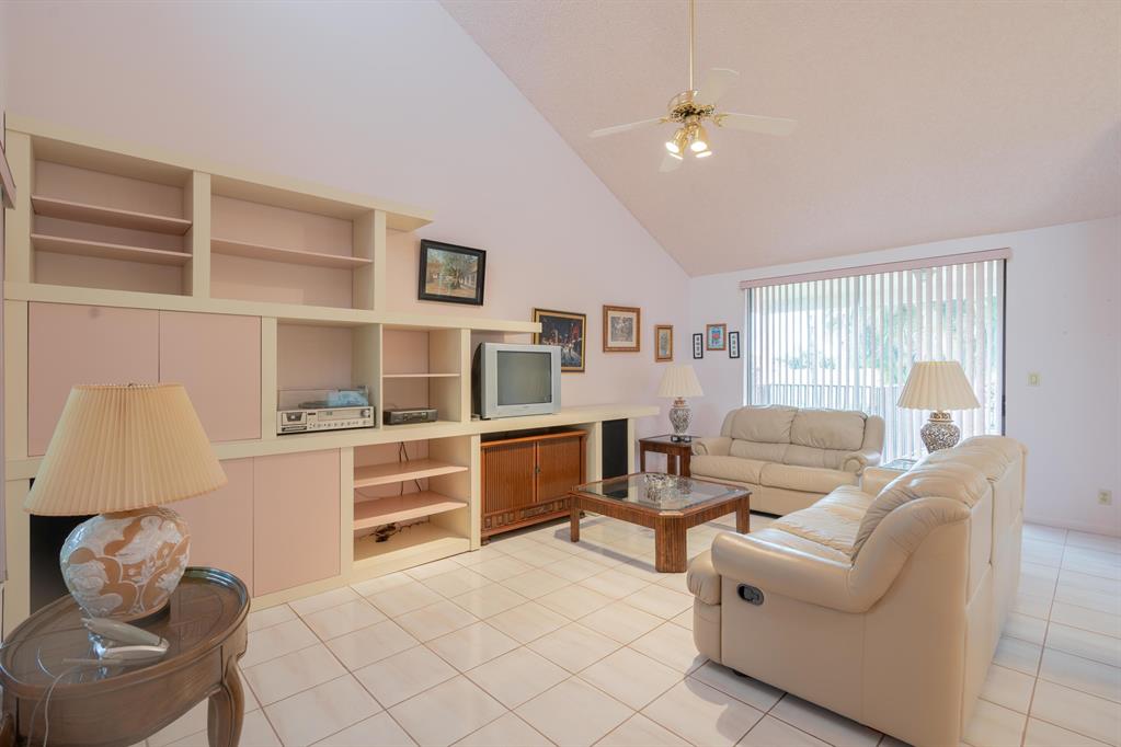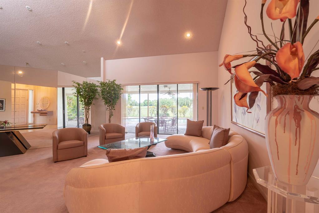 This custom home sits on the 11th hole of the Lakes Golf Course at Boca Woods with a spectacular southern view. It features the desirable split bedroom design with the second and third bedrooms on the east side with a double sink bath and the luxurious master suite on the west. A large walk in closet complements the master bedroom with both a walk in shower and large bath tub.The large patio has a free form pool and an extended roof with an outdoor entertaining area plus a cabana bath with shower. Boca Woods is known for its exceptional club atmosphere with 645 homes. It features two fabulous golf courses, tennis and pickle ball courts and a lively community of neighbors. The club has frequent dinner dances with a wedding like experience and a large dancing floor.