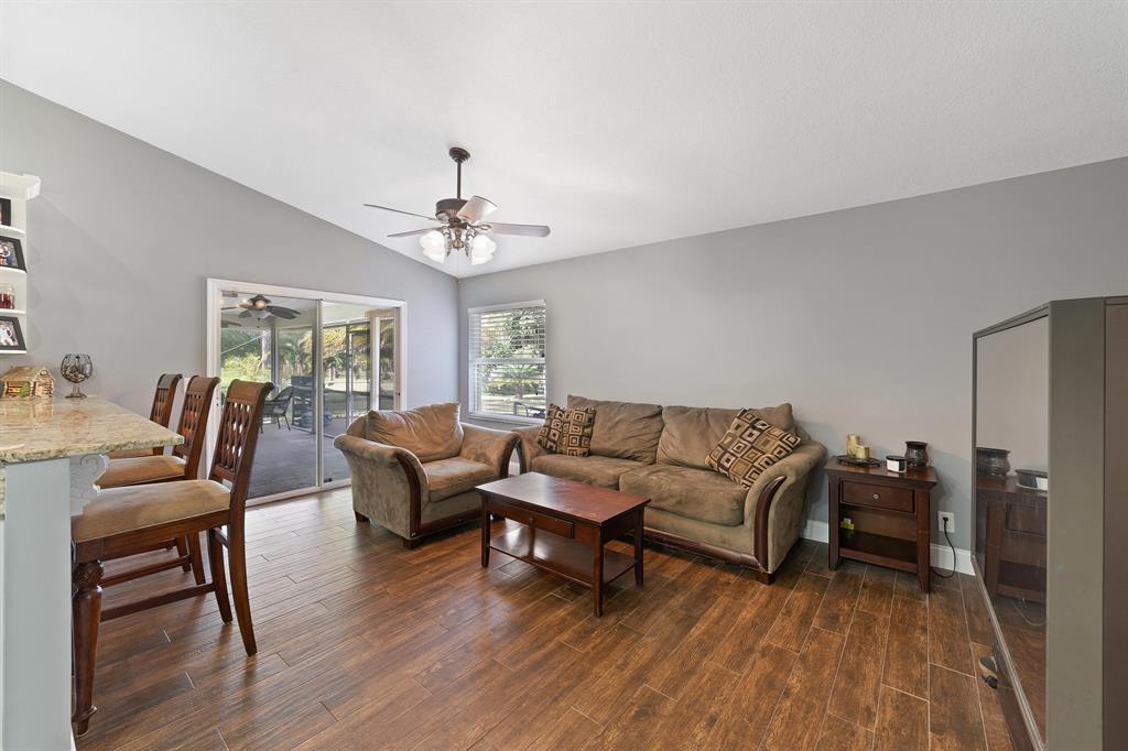 4 bed 2 bath home with bonus fireplace room nestled on 1.14 acres in a picturesque setting of mature trees & a beautiful yard with a fire-pit. Den/billiard room could be made to a 5th bedroom. Just needs a closet. This 2,509 sq ft. home is the ultimate oasis with a HUGE master suite! 2 car garage, open/large kitchen with updated appliances, large sink and granite countertops. Home also has wood plank tile floors, vaulted ceilings, security system, and a gorgeous back patio and backyard. A/C and well system are 2 years old and well pump was replaced 2 months ago. Windows let in lots of natural light. Close to parks, shopping, restaurants, & highway access. Bring boat and RV. Pond has a small dock. (Two Date Palms next to the driveway are excluded from sale)