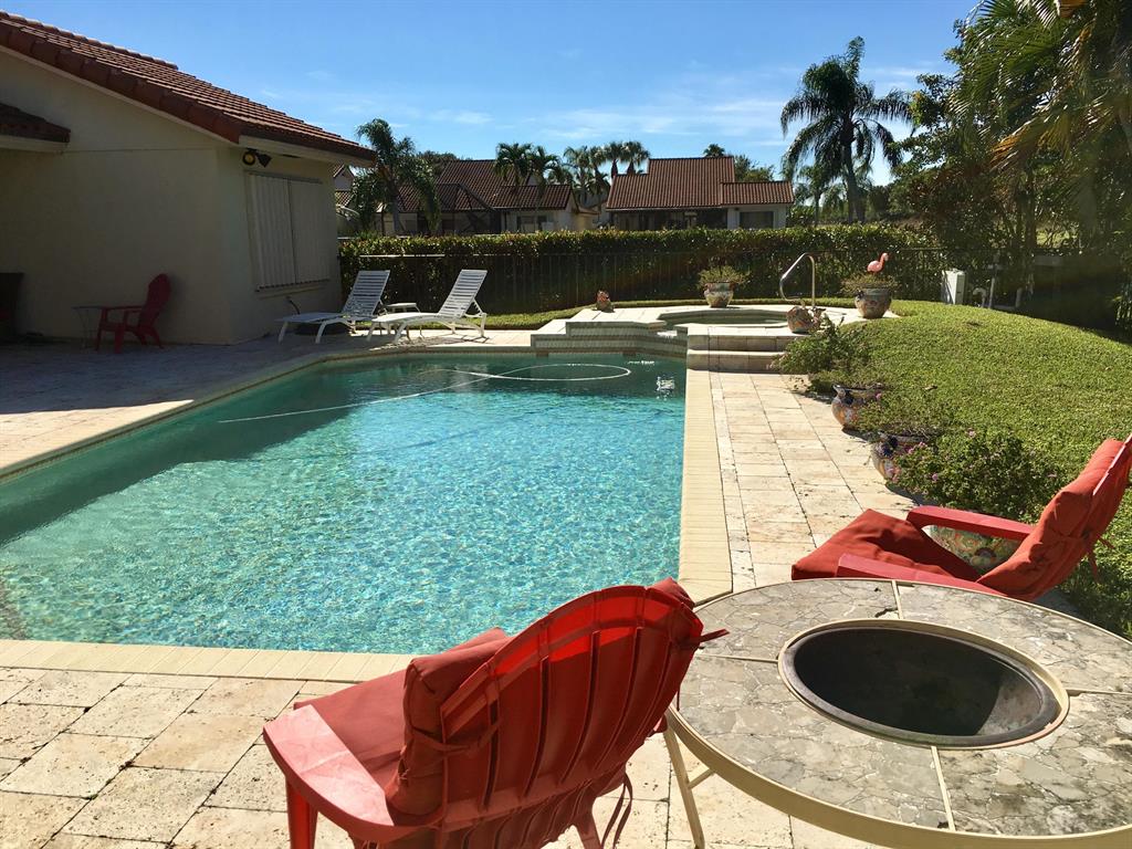 REDUCED $10,000!!Do you like to entertain then this is the house for you! This luxurious home has a hard to find extra long driveway, a very private corner lot with attractive landscaping, accordion hurricane shutters and a roof installed in 2011. Featuring a custom pool/spa in an open patio with a outdoor summer kitchen which includes a barbecue grill, refrigerator and sink backs to a scenic canal assuring privacy. Inside the home a spacious floor plan with vaulted ceilings, upgraded ceramic tile floors throughout plus beautiful wood flooring in the Master and Guest Bedrooms. The kitchen features granite countertops with eye appealing appliances and cabinetry accentuated with built in custom shelving. Modernized handsomely appointed bathrooms incorporate plenty of space for storag