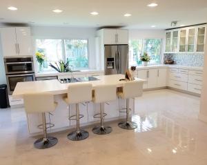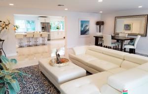 Fully renovated modern home with a spacious, re-designed floor plan offering over 2200 Sq. ft. of living area. Features include hurricane impact windows and doors, stainless steel appliances, highly upgraded cabinets, vanities, fixtures, accentuated by a generous lighting package. Large porcelain tiles throughout create a seamless flow pleasing the senses. A paver circular driveway was created for convenience along with a new sprinkler system to take care of the recently added landscaping. A brand new A/C unit has been included to satisfy your cooling and heating needs. Enjoy this beautiful home and its close proximity to outstanding restaurants, shopping, and beaches. A true Camino Gardens Gem.