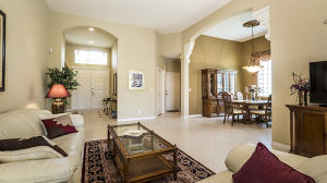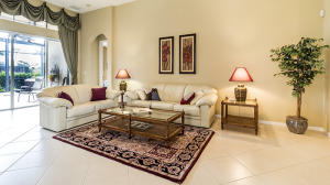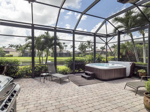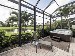 Super premium water lot for a one-story 2BR/2.5BA+Den ''Hamilton'' in the Grande. This highly optioned former builder's model offers peacful water views, lush landscaping (front and back), a lovely large screened lanai, redone kitchen with custom cabinetry, granite, stainless. Other features include: Accordian Shutters, outside gas line, sink in garage, 18'' ceramic tile on the diagonal, gorgeous hardwood floors in master BR and study, custom window treatments, new water heater, side yard for the gardener or pet owner, newer Trane A/C system with UV Ray system, Quoizel front lighting controlled with timer from inside, new gas dryer, two custom closet built-ins in master suite, water filtration system,black out slider in master suite. This home is light, bright, upgraded and neutral.