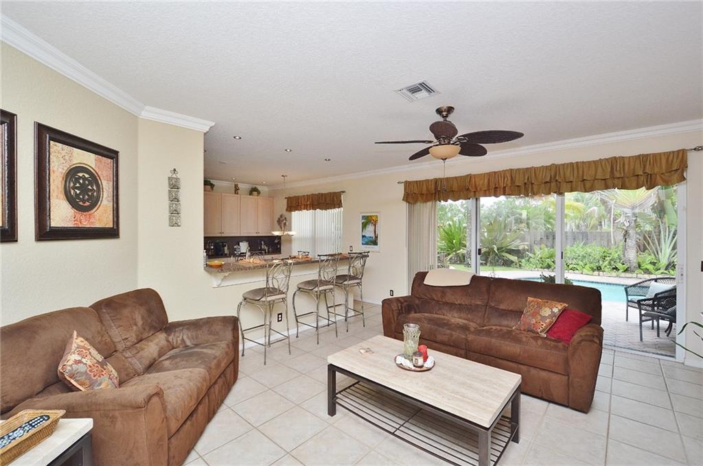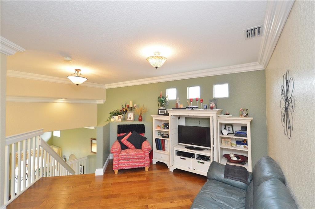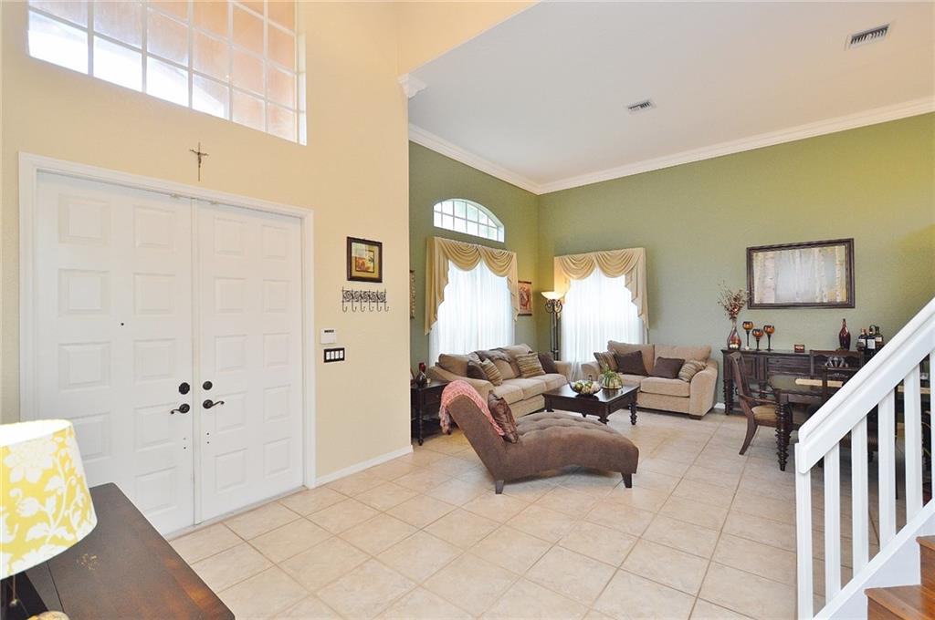 Like a Model - A Showplace! Approx 2600 SF A/C. High Volume Entry, Knockdown walls/ceiling, HUGE Mstr Br 1st Floor. 3 Br's/Loft Up. 2 Baths remodeled, Crown Molding thru-out., Tiled 1st floor; Wood floors in Mstr Br, Stairs, Loft & 4th Br. Carpet in 2 Br's. Kitchen: 42" Wood cabinets, S/S Appl, Granite counter/snack bar. Pool w/South Exposure & pavers. Storage cabinets in garage. Maint Incl: Lawn, sprinklers, 24 guard, Cable, Alarm Monitoring, Weight rm, Comm pool & play area. City Park at Entrance.