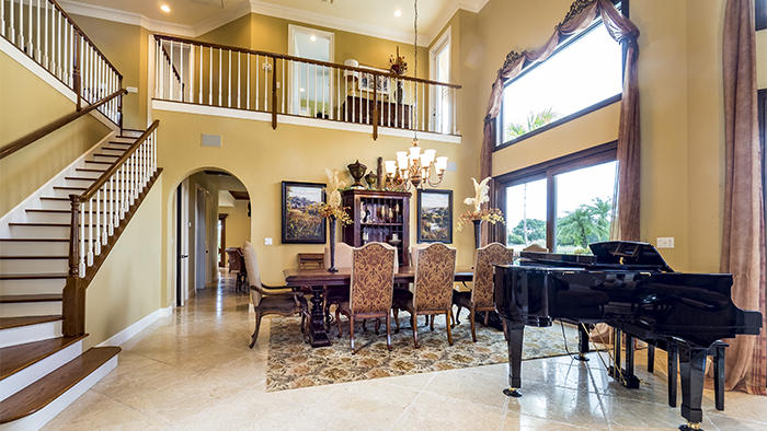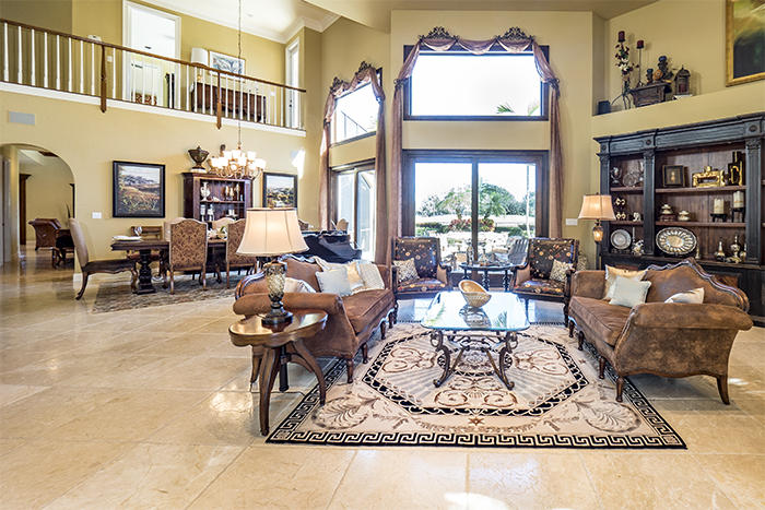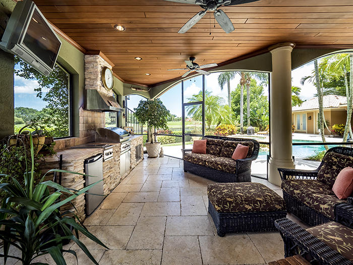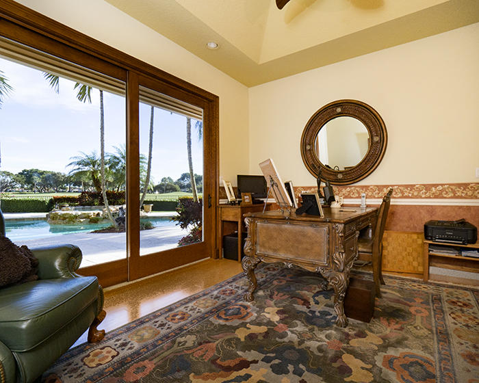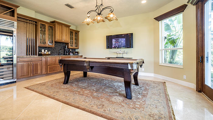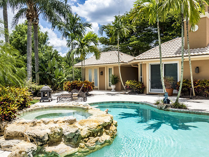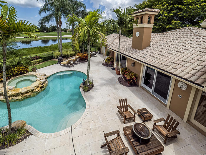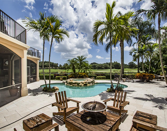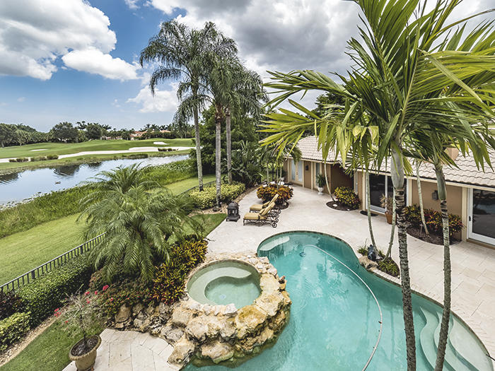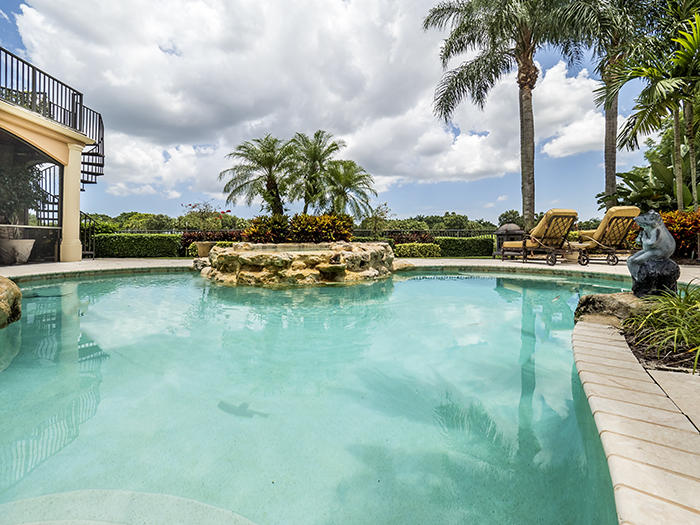 With over 200 ft. of water frontage, this incredible estate is one of Ibis's finest. Located on a premium water and golf cul-de-sac lot, this home overlooks the 8th hole of the Nicklaus designed Legend course. This home has been completely remodeled and updated and boasts 5BR/4.2BA+Den including a private guest house. There recently renovated kitchen features top-of-the-line stainless appliances, granite tops and custom wood cabinetry. Elegant marble floors throughout this home, a gracious screened Florida Room with high-end summer kitchen overlooking the dramatic pool & spa. Oversized yard features a putting green. Soaring ceilings, designer touches and upgrades, incredible curb appeal, and a premium lot. 90% of the windows are Impact Glass, all windows have panels. Roof replaced in 2005.