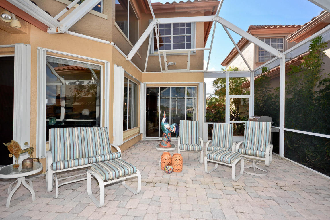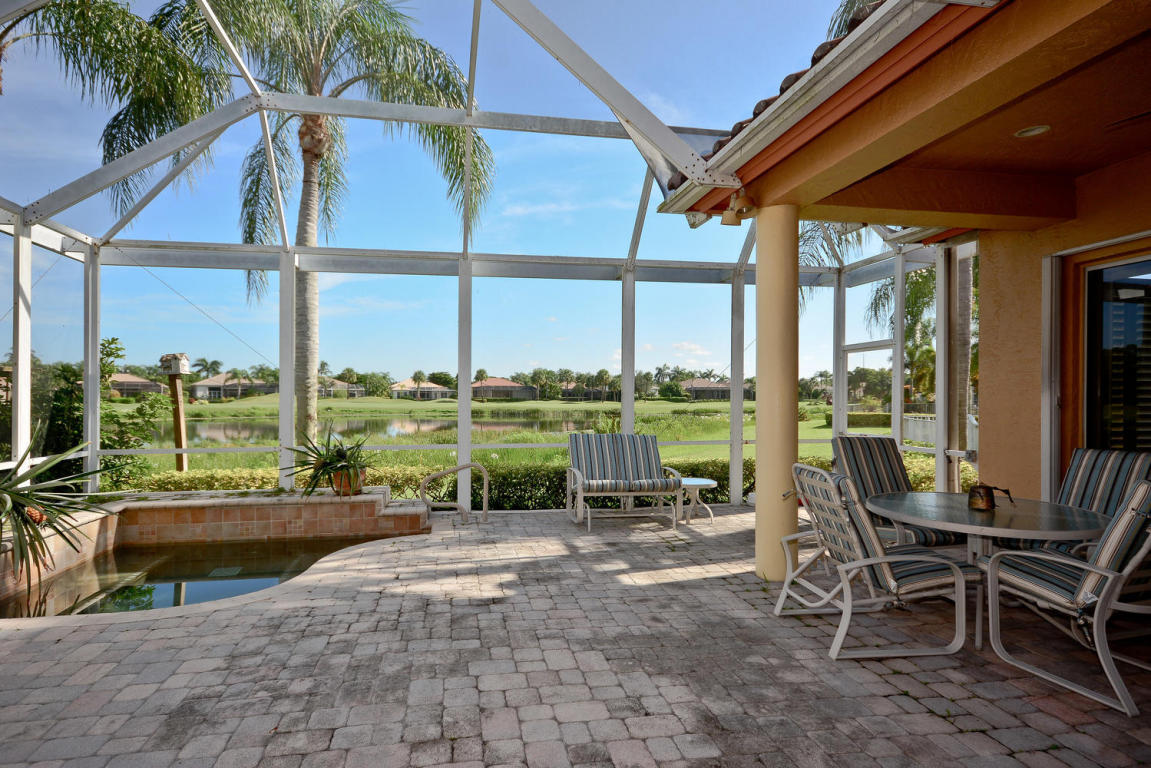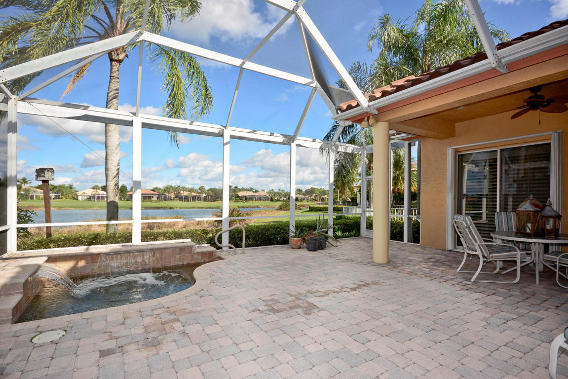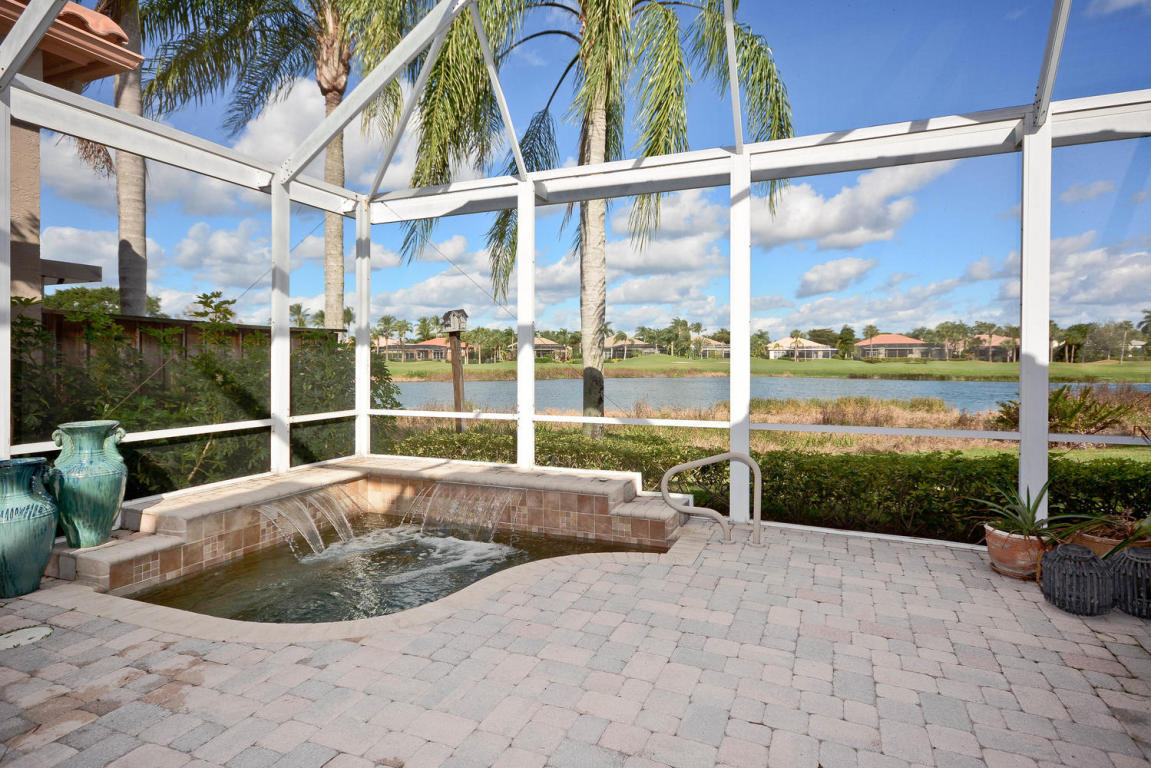 This Beautiful Home is upgraded to a Tee!The Banyan Model, has gorgeous water and golf views from the moment you walk thru the double glass front doors. The kitchen is completely re-done with custom cabinetry and stainless steel appliances. Both master and den have wood floors. Closets have built-ins, and there is a spa on outside patio overlooking lake and golf course. The spa is equipped with a Jandy Aqua Link System conveniently located in the Master Bedroom. Newer A/C unit as well. It offers Accordian shutters, Plantation shutters, too much to list.VOTED AMERICA'S HEALTIEST CLUB 2017, EXCELLENCE IN WELLNESS AWARD 2017!!CALL FOR A TOUR OF THIS PROPERTY!A wonderful-move-in perfect home with a fabulous location!