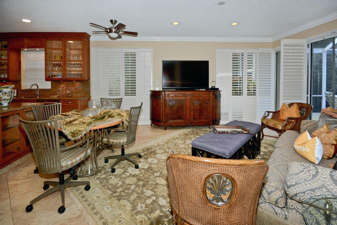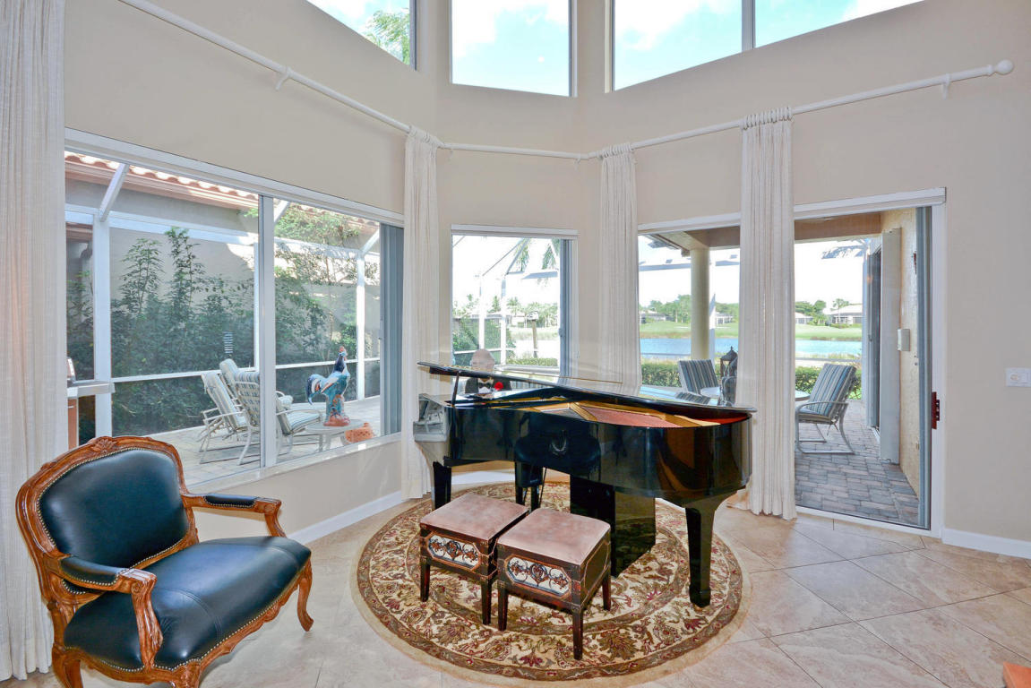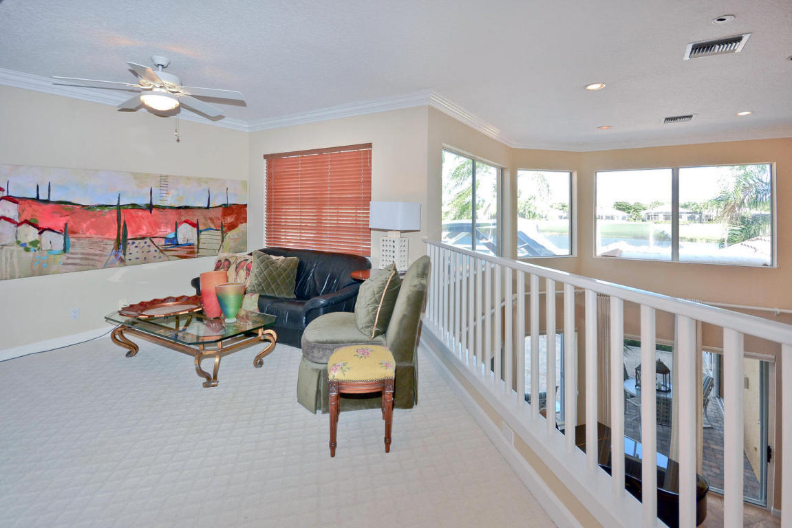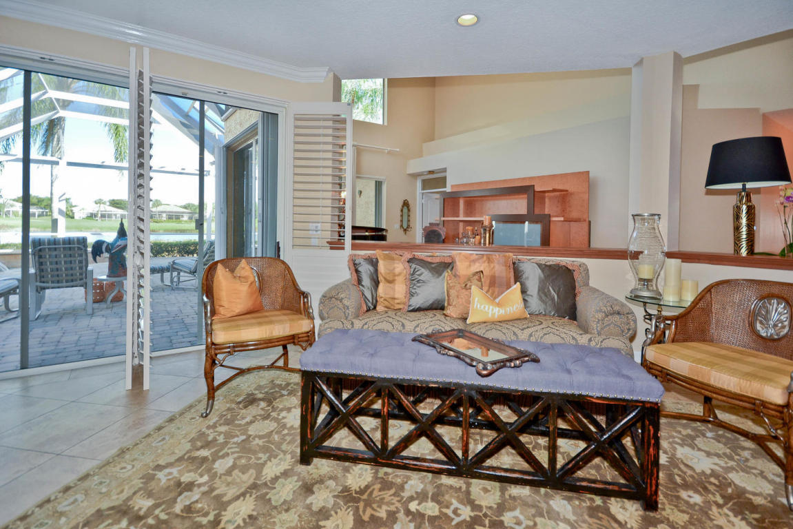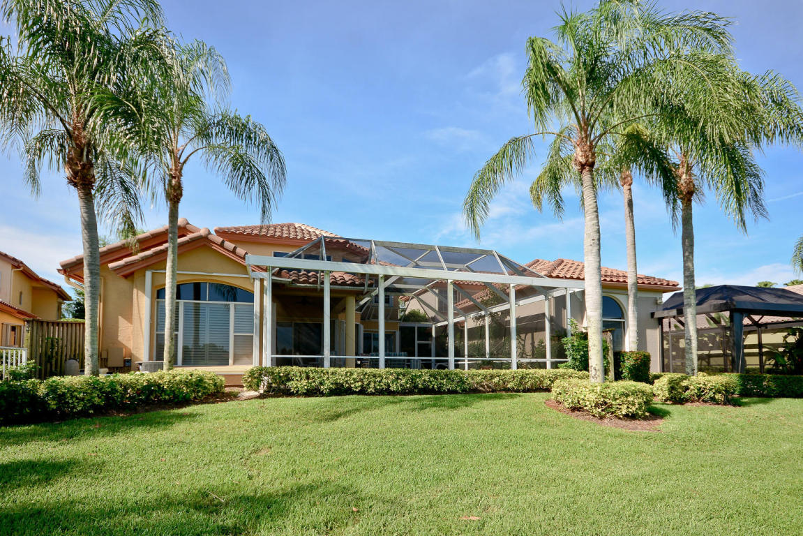 This Beautiful Home is upgraded to a Tee!The Banyan Model, has gorgeous water and golf views from the moment you walk thru the double glass front doors. The kitchen is completely re-done with custom cabinetry and stainless steel appliances. Both master and den have wood floors. Closets have built-ins, and there is a spa on outside patio overlooking lake and golf course. The spa is equipped with a Jandy Aqua Link System conveniently located in the Master Bedroom. Newer A/C unit as well. It offers Accordian shutters, Plantation shutters, too much to list.VOTED AMERICA'S HEALTIEST CLUB 2017, EXCELLENCE IN WELLNESS AWARD 2017!!CALL FOR A TOUR OF THIS PROPERTY!A wonderful-move-in perfect home with a fabulous location!