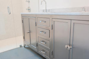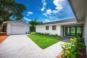 Just finished brand new construction in the highly desirable So-So district in WPB and deeded to A-Rated South Olive Elementary. This 3 bedroom, 2 bathroom with detached garage offers at 1,435 sq. ft. under air (1,743 Total Sq. Ft.)HOME FEATURES: Windows - CGI Impact, Insulated, Low E glass Doors - All interior doors are solid core doors Door Hardware - Emtek Flooring - 5" pre-finished engineered wood floors Cabinetry - Solid plywood boxes. Soft close hinges and drawer glides Appliances - Kitchen Aid - Stainless Countertops - Quartz New Roof New AC Contemporary moldings & millwork. Tongue and groove cedar ceilings at patio and hallway Independently switched reading lights at Master Bedroom Oversized Master shower with rain-head and frameless gla