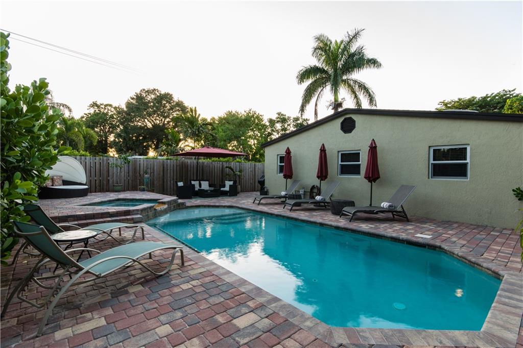Recently rebuilt from the ground up! Gorgeous contemporary, magazine quality home! Must see to appreciate!Oversized corner lot on alley w/custom 2nd driveway w/private rear entrance gate. New low maintenance tropical landscaping w/all new irrigation. Gas Heated salt water pool & spa w/splash pad. Resort like environment. Ample storage & large hurricane rated shed. Open plan featuring huge kitchen, gas stove, quartz countertops & enormous master suite w/gigantic custom closet. Turn key entertainers dream!!