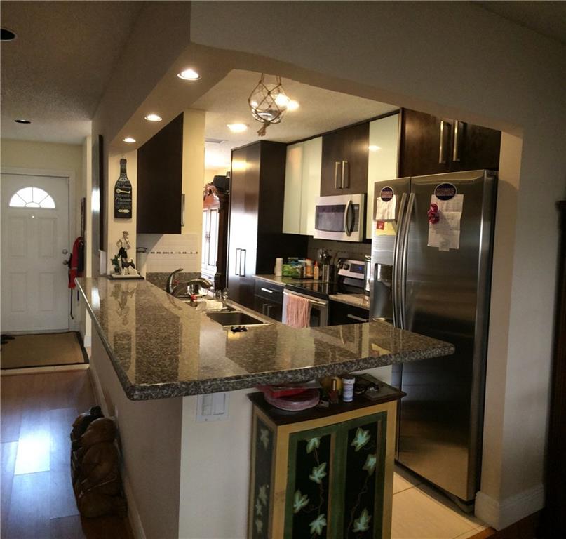 Spectacular 2 stories in Plantation with 3 large bedrooms, 2.5 baths, converted 4th bedroom or den and totally remodeled by designer with a modern flare. Here's your Dream Kitchen w/granite tops, chocolate wood cabinets, stainless steel appliances, w/tile and laminate flooring throughout. Relax in your private and tranquil screened enclosed and fenced patio. Kids OK, Pets OK, Rentals OK after 1-yr, HOA requires 6 months HOA Fees as security. IF FINANCING=>MINIMUM 15% DOWN PAYMENT REQUIRED=>CONVENTIONAL.