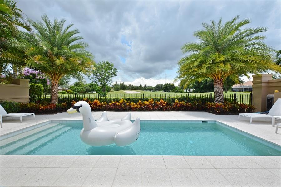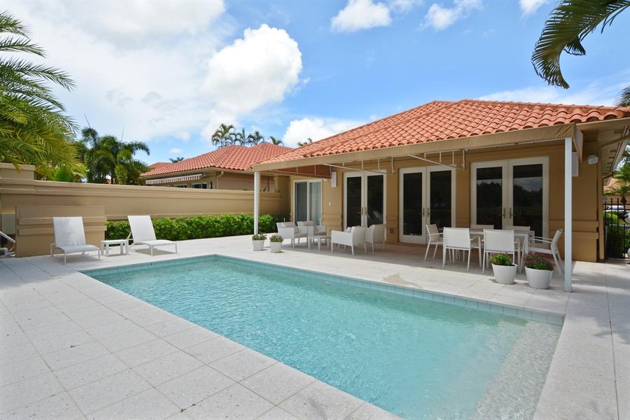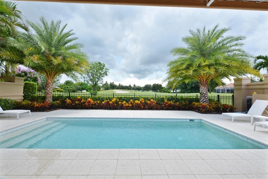Elegance and sophistication best describes this remodeled 3 bedroom, 2 1/2 bath residence sited on lushly landscaped golf course lot. Nestled within Boca Grove Plantation you will find this magnificently updated residence. Decorative walkway, double door entrance to the rotunda foyer with recessed lighting. Spacious great room with French doors overlooking the expansive patio, pool and golf course beyond. Gourmet island kitchen with quartz counters, top of line appliances is a chef's delight. Split bedroom plan. Grand master suite with outstanding walk in closet. Lavish master bath: dual sinks, separate shower, Jacuzzi and water closet. Guest bedroom and bath, den/study or 3rd bedroom with Murphy bed, laundry room, two bay garage complete this exceptional home. Golf cart included.