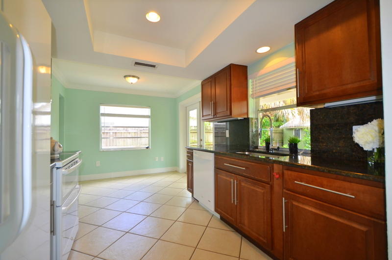 Lovely updated single family home with an open/spacious floor plan. Remodeled kitchen with granite counter tops, granite back-splash and wood cabinets. Crown molding & freshly painted. Updated bathrooms, including a new bathtub, new toilets, high end vanities/master bath shower has a river rock design. Tile in the living area and brand new carpets in the bedrooms. Beautiful French Doors that lead to a private backyard with Custom paver covered patio and fully fenced in yard. Fruit trees including Mango and Banana tree. Matching shed in the backyard for extra storage. Currently a 2 bedroom with the garage converted to a bedroom that has a window and closet and makes it bedroom #3. Newer A/C Newer Roof ''2010'' Great schools/No Hoa/All Age