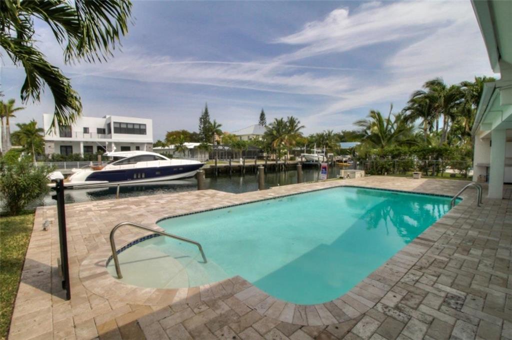 Modern, sleek waterfront home, quick ocean access, no fixed bridges. Incredible open floor plan-lots of natural light. White glass porcelain floors, glass closet doors, home has been updated with the finest finishes. For showings call. New custom kitchen, quartz counters, new appliances, hurricane impact windows and doors.Huge covered patio perfect for entertaining. Large bedrooms, 2 car garage.