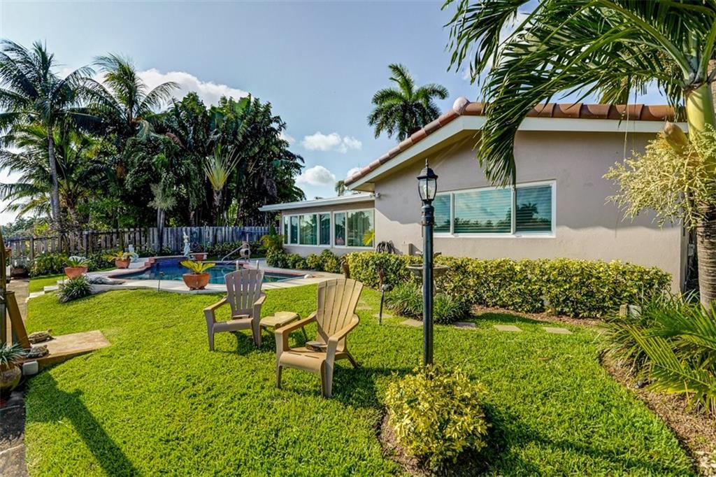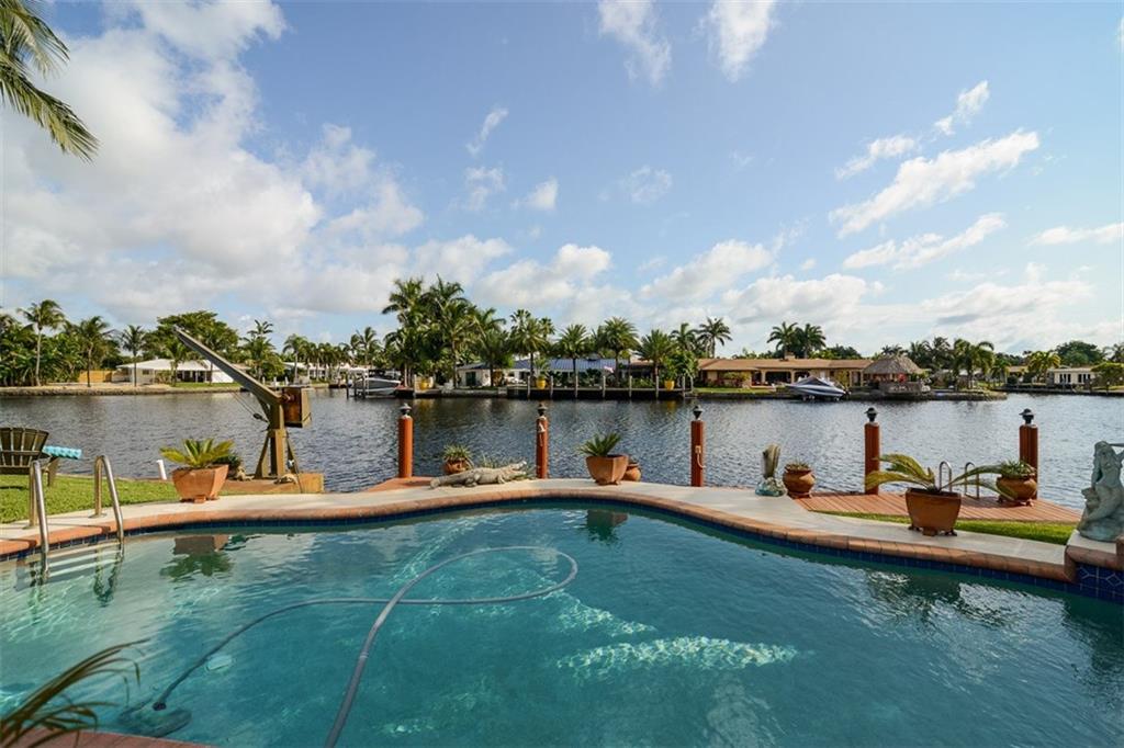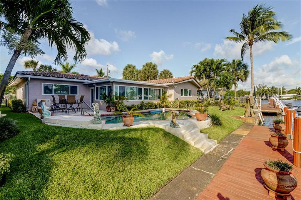 Relax by the pool & enjoy a beautiful relaxing waterfront view located on the South Fork of Middle River. The water is ocean access so bring your boat (or even better, your friend's boat!) This is a true three bedroom, two bath home with bonus room currently being used as a home office. Newly installed impact windows, renovated baths make this a home that just needs you! Homes on the water in this neighborhood rarely come up for sale!6 camera secur system, Stand-by generator, Garage A/c unit.