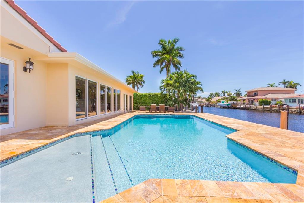 Incredible 220 ft of sparkling water Point Lot with no fixed bridges. One-of-a-kind home is priced to sell! Bright and open home has 3BR/2BA plus 1BR/1BA that can be an amazing in-law suite. Upgrades Galore, new a/c, electric and plumbing, top of the line chef's kitchen, updated bathrooms, marble flooring, new pool with many features. Dock and pilings completely renovated. Impact windows/doors, travertine circular drive & pool deck, privacy with tropical trees, own your piece of paradise today! Call Now!