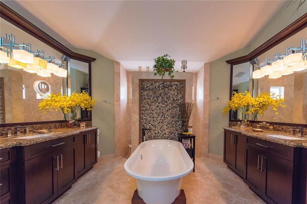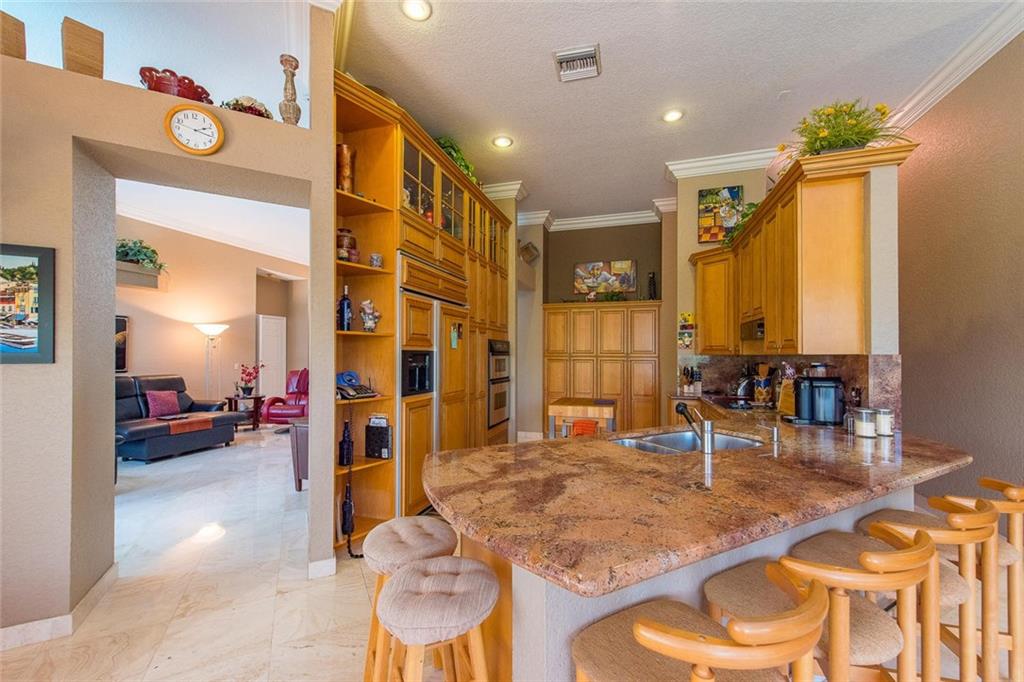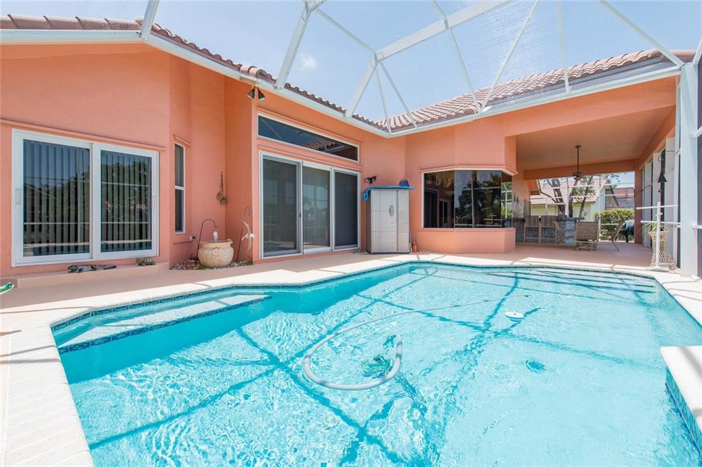 This house is a 10! Triple split floor plan for incredible privacy. 3 zone A/C for economic climate control. Well designed floor plan. A Gorgeous real wood kitchen doors that open to the kitchen area and the family room that all look out to the pool and water. Amazing views of the wide canals and lakes. Huge screened patio with an outdoor summer kitchen that faces East so it can be used comfortably in the hottest months. The master suite is incredible! It features a freestanding soaking tub, double split vanity, double entry shower with great closets and a large room with sliders that opens to the pool.