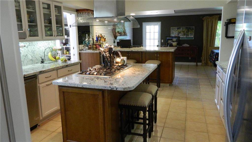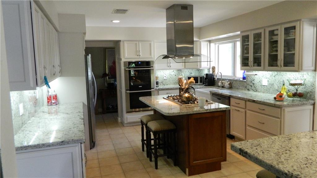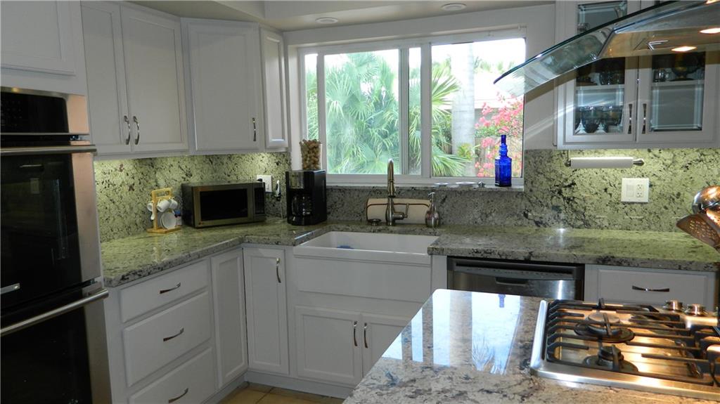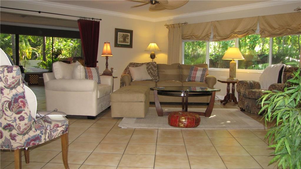 Charming and unique, This spacious home has an open floor plan and is great for entertaining. Oversized kitchen with granite countertop/backsplash, country ceramic sink, double wall oven, gas range. Large bedrooms. Impact windows + shutters for panoramic window facing the pool. Impact glass doors. Built-ins and gas fireplace. 2 A/C's. Alarm system. Tiled in living areas. Laminate flooring in bedrooms. 2-car garage. Saline/chlorinator pool. Tropical feel with mature royal palms.