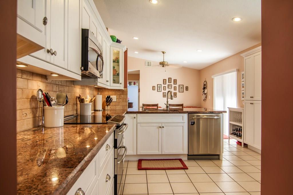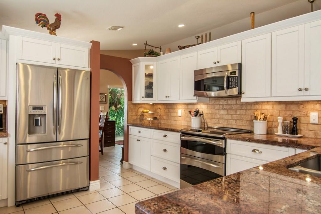 Exceptionally maintained 3/2 Abbey Road Model on a beautifully landscaped lot. Neutral tile on high traffic areas and wood laminate in the bedrooms. Gorgeous remodeled kitchen. Granite countertops, s/s appliances, under-cabinet lighting. Vaulted ceilings. Lots of accent lighting. Split bedroom layout. Newer A/C. Hurricane shutters. Backyard has been transformed into a Zen-like garden with extensive use of pavers, hot tub and waterfall. This peaceful setting will bring you hours and hours of relaxation.