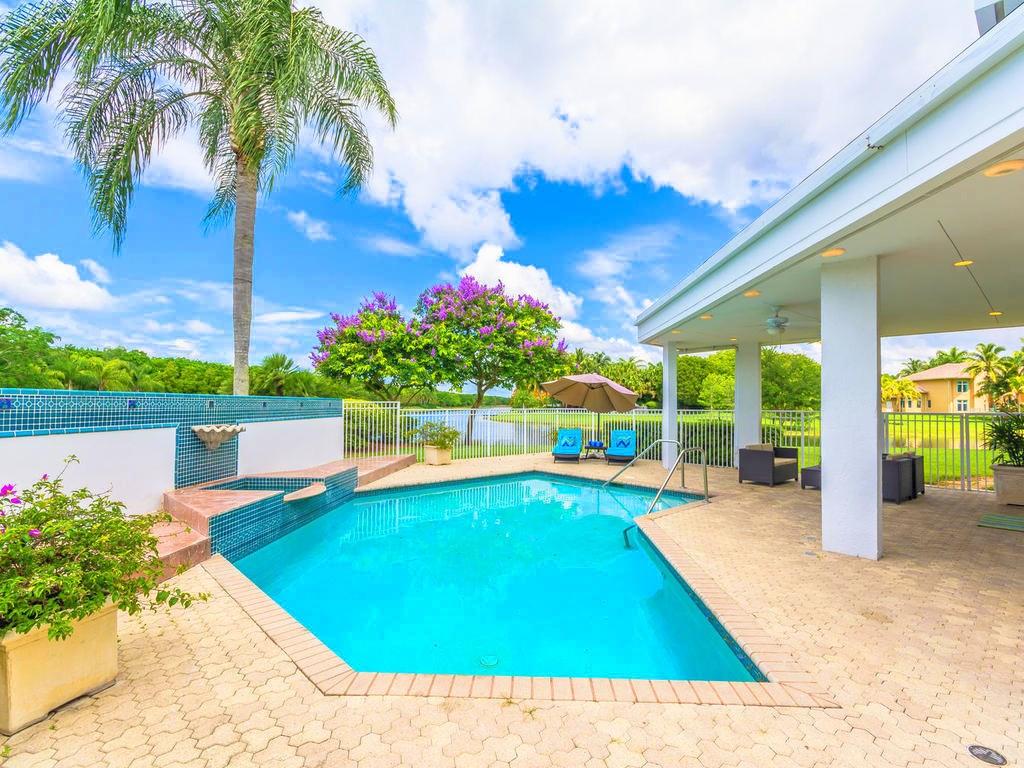 SPECTACULAR ONE-OF-A-KIND CONTEMPORARY MASTERPIECE ON ACRE+ WATERFRONT CUL-DE-SAC POINT LOT IN WESTON'S PREMIER COMM! COPPER-COVERED FRONT DOOR, DRAMATIC FLOOR PLAN W/28' SOARING CEILINGS, 2-STORY WALLS W/GLASS. EXQUISITE BLENDS OF MARBLE, GRANITE, WOOD & LIGHTING. GRAND SWEEPING STAIRCASE TO UPPER LEVEL GUEST SUITE, GAME RM & BALCONY. MULTIPLE TERRACES, POOL W/EXERCISE BAR, SUMMER KITCHEN. 2-STORY LIBRARY W/SPIRAL STAIRS, HIS/HER LUXURIOUS MASTER BTHS, BLUE GRANITE KITCHEN, ACCORDIONS, GENERATOR & MORE!