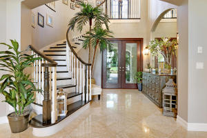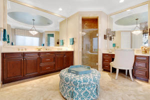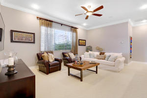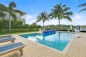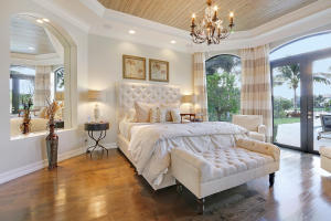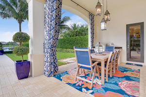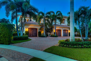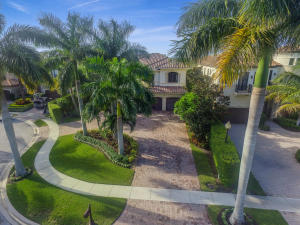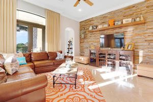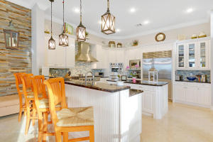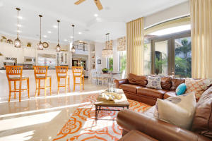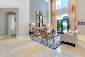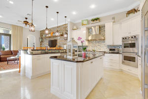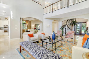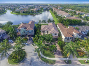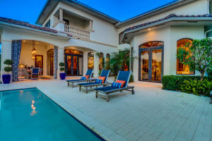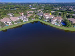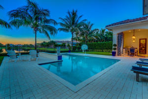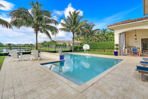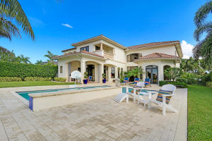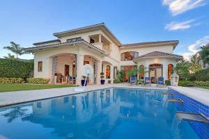 Professionally Decorated with a cheerful Florida flair! Estate/lakefront home on 0.34 ac features 7 Bedrooms with a 1st floor master suite, 6/2 bathrooms, 3 car garage & oversized circular driveway. The fenced backyard has a large heated pool & covered dining area with an outdoor kitchen. Inside kitchen has gas for cooking, an adjoining informal dining & large family room. The first floor also has formal living and dining rooms and secluded guest suite. The 2nd floor has an open loft living area adjacent to another bedroom suite with an oversized balcony. 7,021 sqft make it perfect for entertaining & those looking for luxurious space inside & out. Enjoy the country club lifestyle(cafe, spa, activities)no membership. Buyer pays 1X cap contribution of 1 qtr of dues & $75 min dining fee