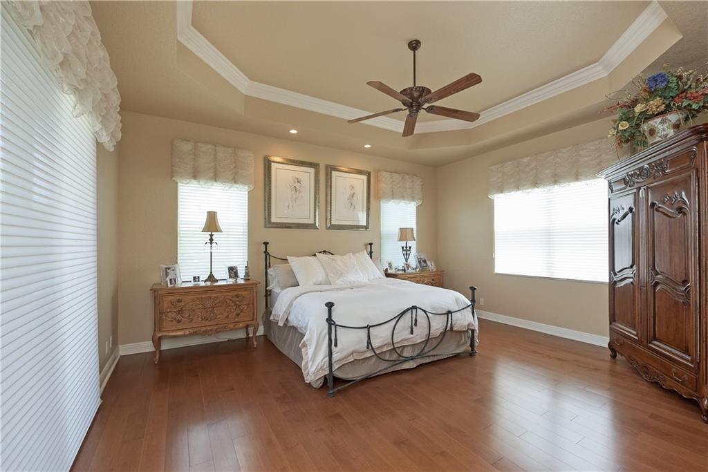 Pristine designer decorated "Dorchester Model" on beautifully landscaped point water lot. Fabulous center island kitchen with 42" cabinets, granite, tumble marble backsplash and upgraded s/s appliances opening to a great room with custom built in entertainment center. Triple split plan. Large porcelain tile on diagonal-closet organizes thru-out. High ceilings, huge glass and extended brick patio with retractable screening. Perfect home for South Fl living and entertaining
