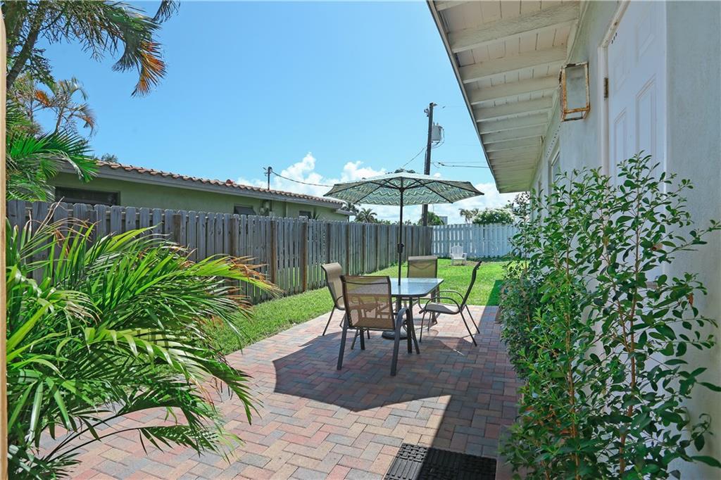 Location, location, location! Fantastic neighborhood at Pompano Isles. When you enter the super cute two bedroom two bath house you see an open floor plan with a large open kitchen and a huge breakfast bar area. Stackable front loading washer and dryer. New window treatments, fresh paint in the large living area. The exterior features large backyard with new brick paver patio. Great for pets! There are many shops and restaurants surrounding. Best deal in East Pompano Beach!