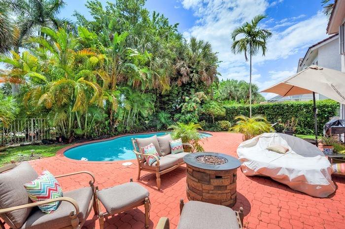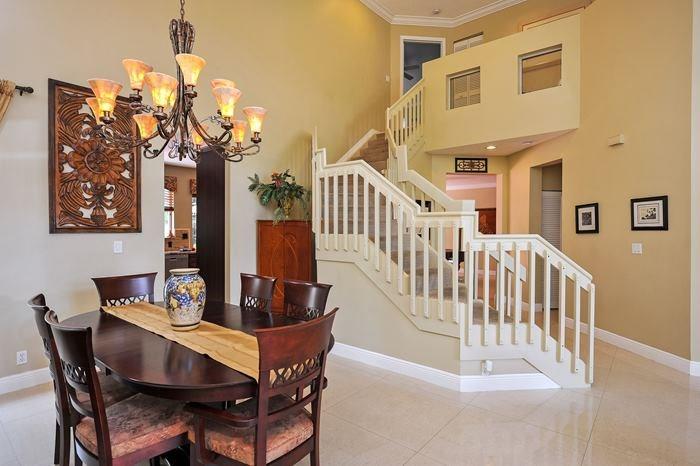 Beautiful home in Grand Palms made for entertaining family and friends. Large open living area with porcelain tiles throughout. Updated kitchen with a double oven, 2 over sized pantries and a large granite island. Enjoy your morning coffee pool side or a leisure swim on a Sunday afternoon. Vaulted ceilings with an elegant spiral staircase that leads you up to the 2nd floor. Spacious master bedroom has his and her closets. Tankless hot water heater. Easy access to Miami, Palm Beach & shopping.