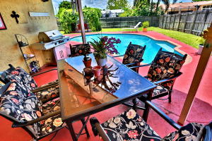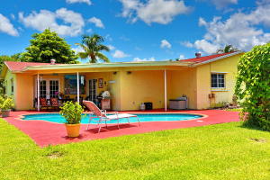 Completely redone and upgraded East Boca home in Boca Raton Square. Upgraded kitchen w/ceramic tile counter tops and new stainless steel appliances. Home is on .22 acres and has a completed fenced yard. No rear neighbors, amazing outside oasis with Pergola, fruit trees and lush landscaping, great for entertaining! In-ground pool with Diamond-Brite (resurfaced 11/2004). All flooring is wood and the bathrooms tile-no carpet. Home is located in A-rated Boca Raton High School, Boca Raton Middle School and Addison Mizner Elementary school district. The home is conveniently located to shopping, dining and minutes to the beach. AC replaced 10/2013 with Nest Controller. Yearly agreement service with Air Around the Clock. Dryer purchased 11/2015. Dishwasher, Refrig & Stove installed 8/20/15