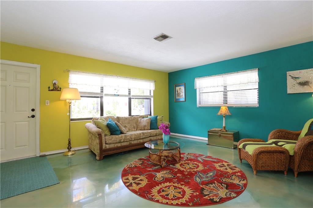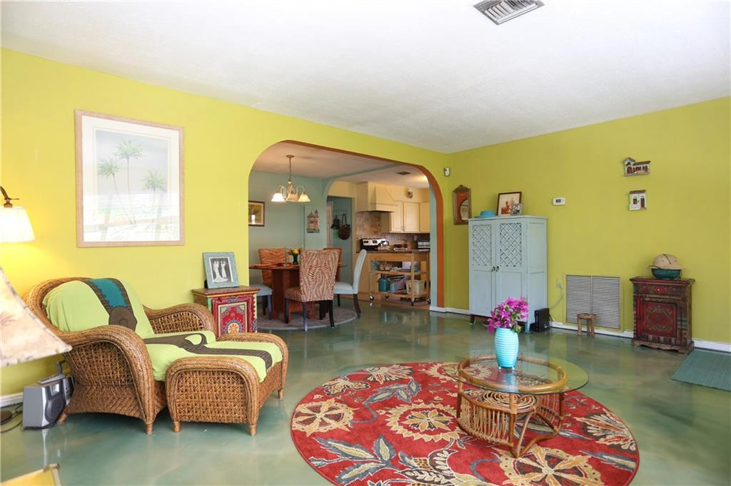 Unique, sought after, one-of-a-kind 3/1 with open floor plan, lovely bones, wonderful colors, and lots of light-nothing else like it in desirable Little Ranches. Floors in great room are designer epoxy evoking the azure ocean & sandy beaches. Backyard is enormous (1/4 acre/room for a pool) and shaded with a plethora of fruit trees (fig, papaya, coffee, pineapple, avocado, coconuts, mangoes). Oversized bedrooms with large closets. Kitchen/bath updated in 2015. Florida room/3rd bed w/separate entrance.