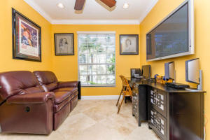 Stunning unit with marble and Travertine flooring through out. Crown molding, beautifully landscaped with summer kitchen. Custom outdoor lighting, all upgrades available. Immaculate unit, stainless steel appliances, interior unit with perfect location in the community. Close to Mizner, Beaches, and shopping. Close to 95. Convenient to all desire and needs. Park like setting, with manned gate. Plantation shutters, built ins, and custom closets in master bedroom. Tons of storage. Beautiful home for the most articulate buyer. One quarter HOA contribution required upon sale.