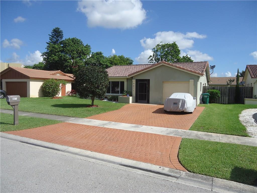 BEAUTIFUL GORGEOUS HOME!! FEATURES LAMINATE WOOD FLOORS IN MASTER BEDROOM & LIVING AREA. VAULTED CEILINGS. SPLIT BEDROOM FLOOR PLAN. MASTER BEDROOM HAS WALK IN CLOSET. REMODELED MASTER BATHROOM. DRIVEWAY WITH PAVERS. LARGE SCREENED IN PATIO TO RELAX. FENCED YARD FOR KIDS TO PLAY, BAR-B-Q & PARTIES. BARREL TILE ROOF - 2009. A/C - 2014. WATER HEATER & FLAT ROOF - 2015. 10-15 MINUTES TO SAWGRASS EXPRESSWAY, TURNPIKE, I-95. 25-30 MINUTES TO FAMOUS SAWGRASS MALL, FTLD INTL AIRPORT & WHITE SAND BEACH. NO HOA.