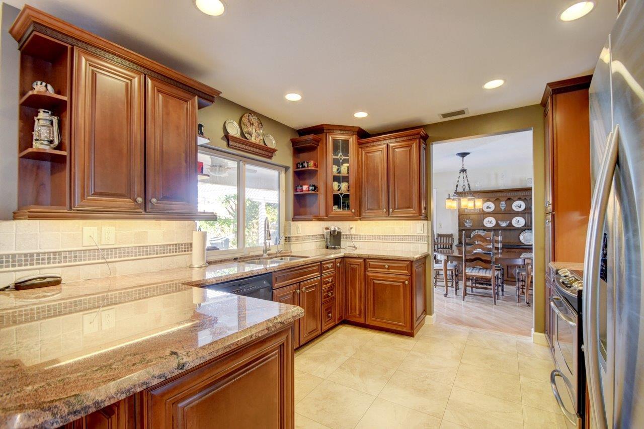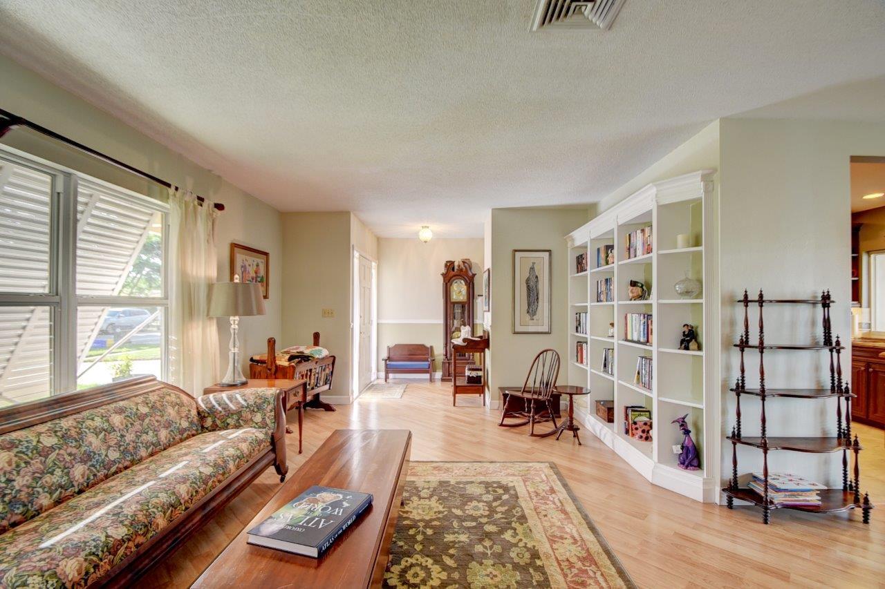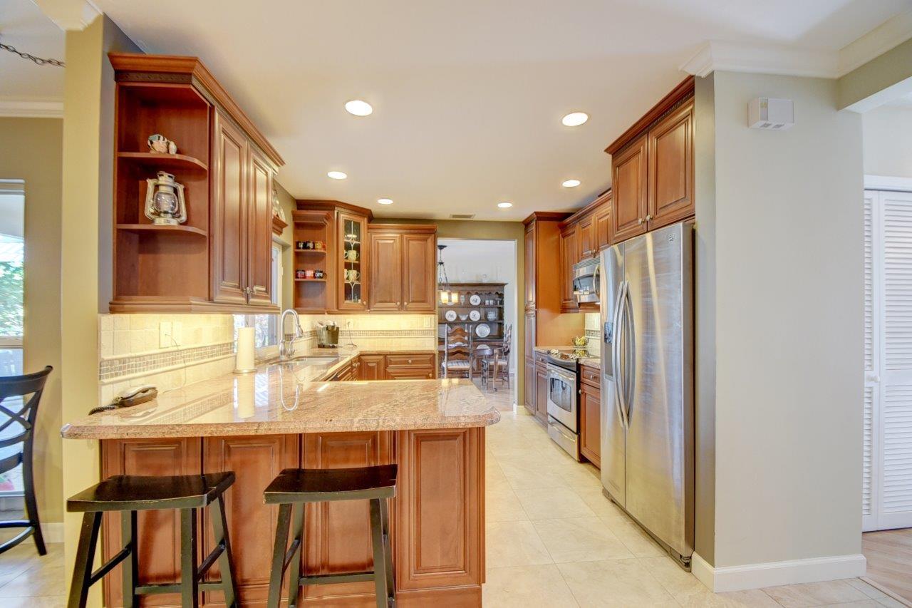 Walk to Boca Middle and High Schools, Whole Foods and Meadows Park from this renovated 4 bedroom with a split floor plan and true 2 car garage in the east Boca Raton community of Country Club Village with no HOA! Addison Mizner Elementary and FAU are just a short drive/bike ride from the home. Tons of upgrades include all impact windows and French doors (except sidelights by front door and single door to back patio), crown molding, plantation shutters, neutral paint colors and recessed lighting. Most of the popcorn has been removed! Spacious kitchen features granite counters, stainless appliances, tons of storage, soft close drawers, and a breakfast bar. The kitchen overlooks the family room with custom built-ins and a porcelain tile floor. Generous master suite has French doors