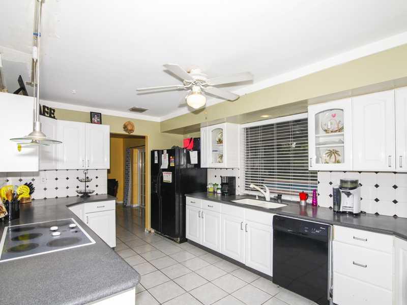 Charming 4 bed 3 bath home in the desirable city of Plantation. Tile flooring throughout. Light & bright living room with beautiful outside views. Dining room has French doors which leads to outside patio. Kitchen features quartz countertops, white cabine try & black appliances. Oversized eat-in kitchen with salt water fish tank. Fourth bedroom can be used as a second master or playroom. Screened-in covered patio has fans to keep you cool in the summer. Backyard & pool are perfect for entertaining. No HOA!