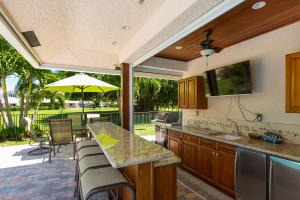 Beautiful four bedroom and four bath plus office home located overlooking a 6 acre park. Private master suite with sitting area and large master bathroom and closets. Updated kitchen with granite counter tops, beautiful wood floors in living areas. Open pool patio areas and summer kitchen completes the outdoor. For protection, this home features a full house generator as well as hurricane windows and shutters.