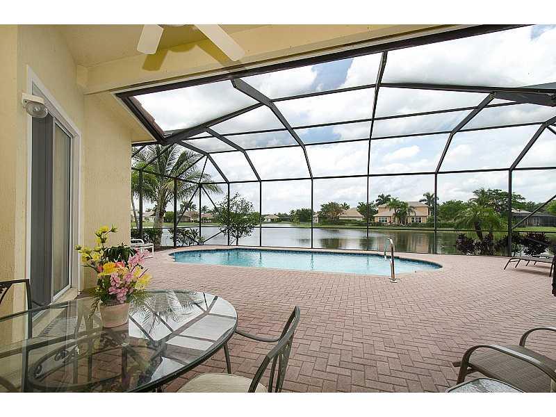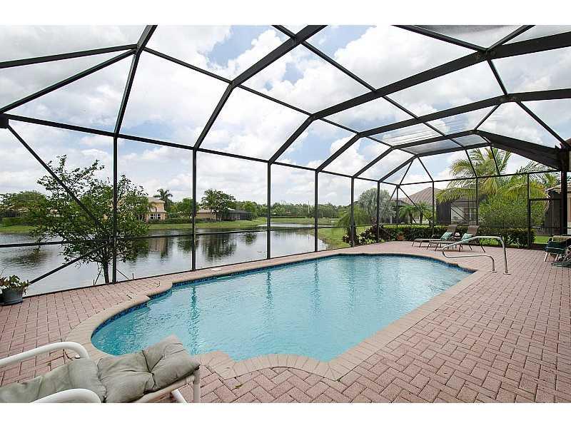 AMAZING PANORAMIC WATER VIEWS! Well-Maintained 4 Beds, 3 Baths Lakefront Pool Home, Oversized Swimming Pool & Expansive 50 Ft Brick Pavered Patio, Screened-In Patio Perfect For Entertaining Guests & Great For Summer Barbecues, Popular Gulfstream Split Flo or Plan, Spacious Master Suite w/Sitting Area & Amazing Views & Access To Back Patio, Gourmet Kitchen w/42' Wood Cabinets & Corian Counters, Hurricane Shutters, Perfect Family Home In Man-Gated Parkland Isles w/Resort Style Amenities, Great Schools! WOW!