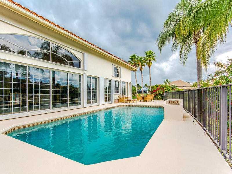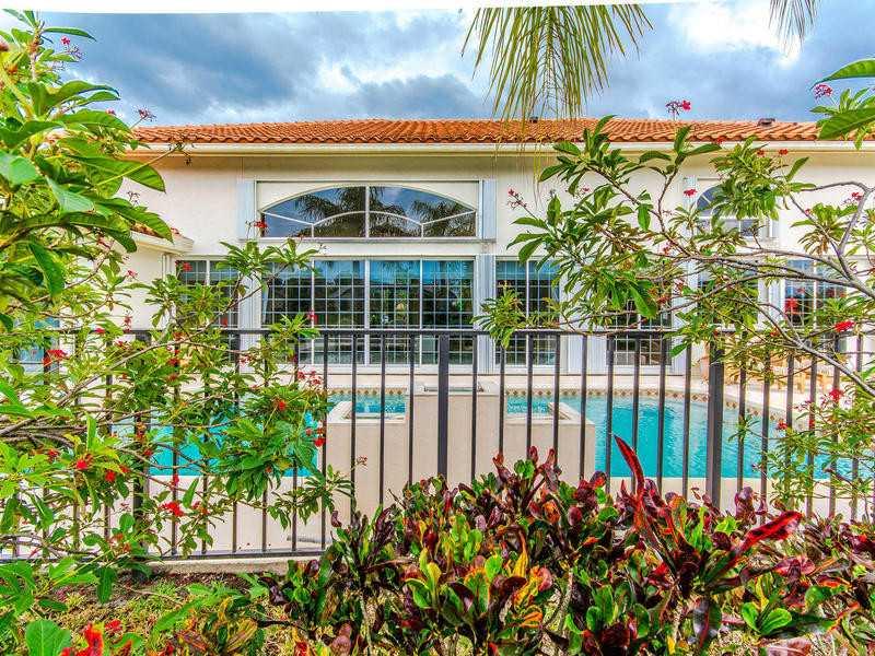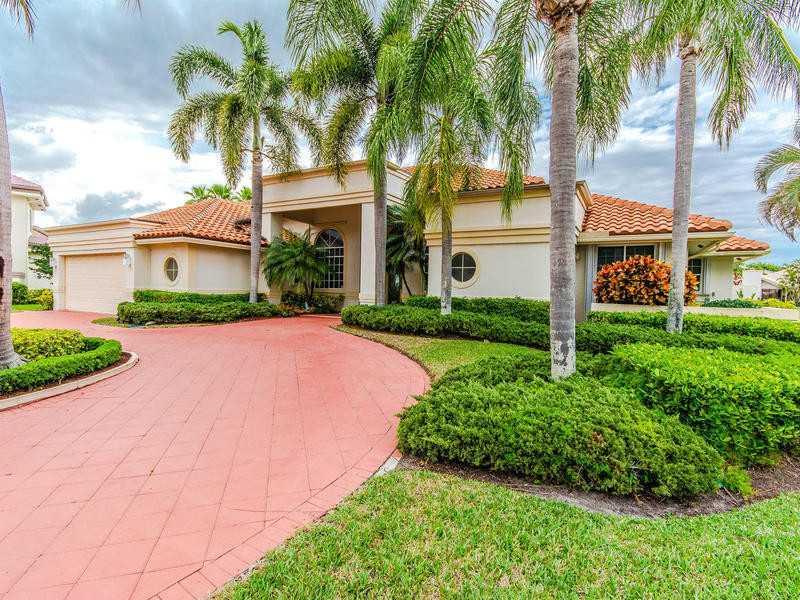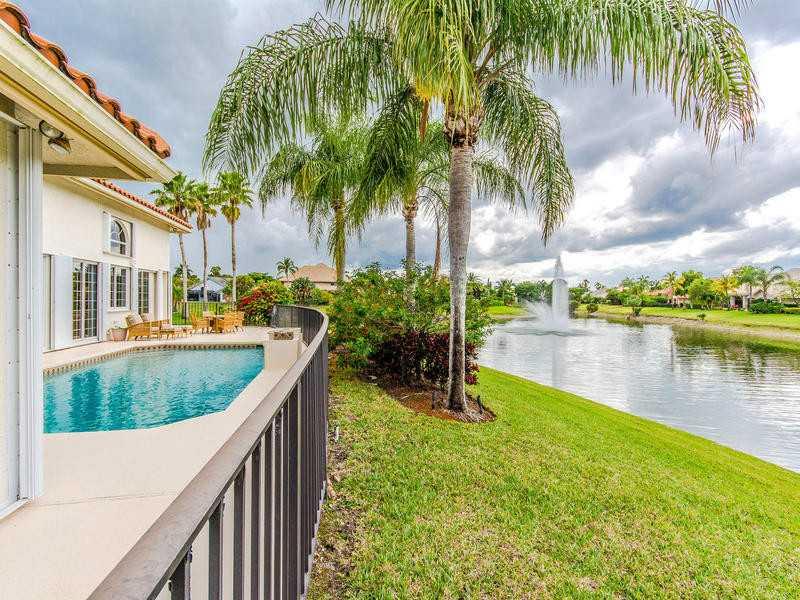 Premiere lakefront lot within Encantada Village boasts a custom built home with water views on 3 sides. Three bedrooms with en suite bathrooms, two half bathrooms, an office, formal living, dining and family rooms, wet bar, kitchen with counter seating an d breakfast area. Soaring high ceilings, crown molding, built in closets, no detail spared. Newer roof, A/C, washer/dryer, whole house generator system, hurricane shutters this house has it all. Spacious patio and pool area overlooks the lake fountain!