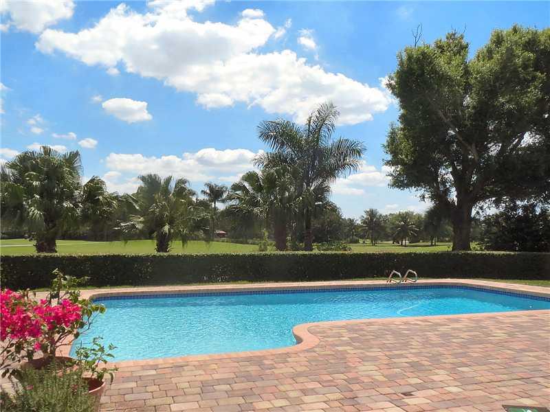 MAGNIFICENT GOLF VIEW AS SOON AS YOU COME THROUGH DOUBLE DOOR FOYER ENTRY.FORMAL DINING ROOM, GREAT ROOM WITH WOOD LAMINATE FLOORING,TRIPLE GLASS DOORS LEAD TO PAVERED PATIO. TONS OF KITCHEN CABINETS,DOUBLE OVENS,DINING AREA ,WITH GREAT VIEW! MASTER BEDRO OM FEATURES TWO LARGE WALK IN CLOSETS, HIS & HER SEPARATE SINK AREAS, CREMA MARBLE SPACIOUS SHOWER WITH GLASS OVERLOOKING WALLED PRIVACY GARDEN.SECOND BATHROOM HAS JACUZZI TUB, DOUBLE SINKS.OVERSIZE PATIO & POOL WITH GARDEN AREA.INSIDE LAUNDRY AREA.