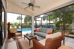 LOCATION+PRICE=GREAT OPPORTUNITY! Charming Mediterranean home with 3BR+Den, 2.5 BATHS with sweeping views 1st fairway of Breakers Rees Jones golf course. Two-story home with Master BR and Den downstairs and 2 BR with shared bath upstairs. Vaulted ceilings in living room & master bedroom. Granite counters and stainless steel appliances. Wonderful outdoor living with screened loggia and 15x30 heated pool/patio. Patio deck will require work but pool in good condition. Great potential to customize to your tastes! HOA includes landscaping care, basic cable, common area maintenance, security & alarm sys monitoring. Breakers West is one of just a few gated country clubs where club memberships are NOT mandatory but golf, tennis/social and Breakers Beach Club memberships are available.