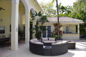 Incredible courtyard home in sought after gated community of Parkside. This home is any entertainer's dream! As you walk through the double wooden doors imported from Italy, you enter a wonderful courtyard that expands into a large private yard. Looking out past the free form heated pool, you feel like you are in your own private resort. There is a summer kitchen and a 1 bedroom guest house with a brand new updated bathroom and marble floor. In the main house, there 3 bedrooms, an office, and a loft on the 2nd floor with the master bedroom on the ground floor. The master bath has been remodeled and features dual vanities, a steam shower and separate toilet and bidet. The living room features volume ceilings with large windows overlooking a canal and a marble fireplace.