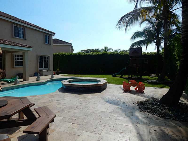 Pleasingly palatial and lovingly maintained premier property. A home with real appeal! Spacious 6 bedrooms 4 baths with so many features. 24x24 porcelain tile throughout the first floor. Brazilian cherry floor on steps and landing, laminate on the second . Popular first floor bedroom and bath. Gorgeous kitchen with granite counter tops, center island and top of the line S/S appliances.Both AC's replaced 2014(16 seer) Secluded, fenced back yard. Heated pool w/ spa,New heater 2014, gorgeous travertine patio
