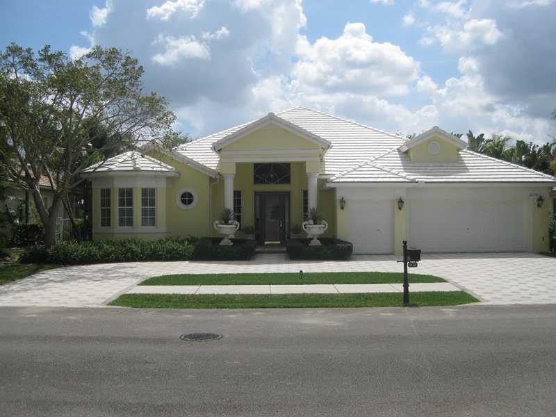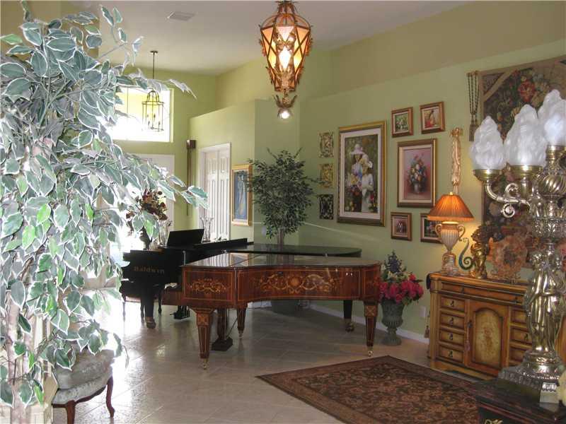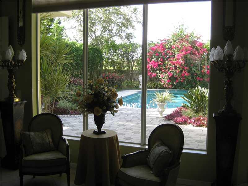 Gorgeous Estate Home. Prestigious Gated/Guarded Golf Community. Open, bright, 13'ceilings, trpl flr pln. $40K builder's optns. 3/3, library, eatnkit, family rm, 2 car gar+ hobby, premium lot, circ drive, 33'x16' pool. Faux paint in MS. H Douglas shades/pl antation shutters. No back neighbors! Home wrnty. Low HOA fees. Top priv/publc schools. Across from NSU/FAU, MIA Dolphins Training Facility, medical facilities, FLL Airport, 595, FL Trnpk, numerous dinning/shopping. Easy drive to MIA/S Beach.