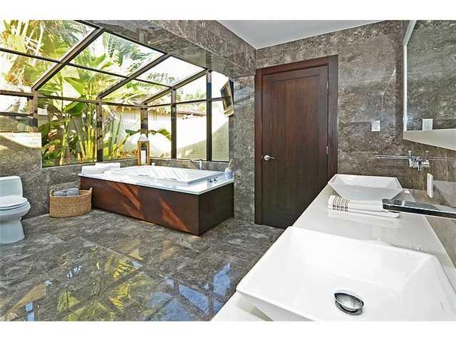 Stunning contemporary design. Enter into a great room with Brazilian granite flooring. Gourmet custom kitchen. Your buyers will love this easy lifestyle of wireless surround sound, 3D internet TV, whole home DVR, camera security system and music stream th roughout...all controlled from a smart phone app. Master bath has whirlpool tub and ceiling to wall windows. Second bedroom designed with a custom wall unit for use as an office. Heated, salt water pool/spa and tembo marble pavers all on 106' of water.