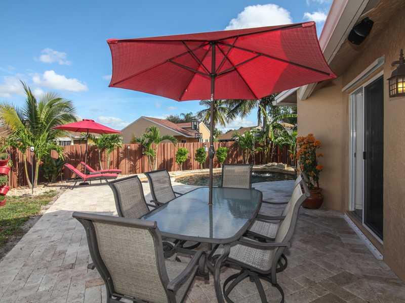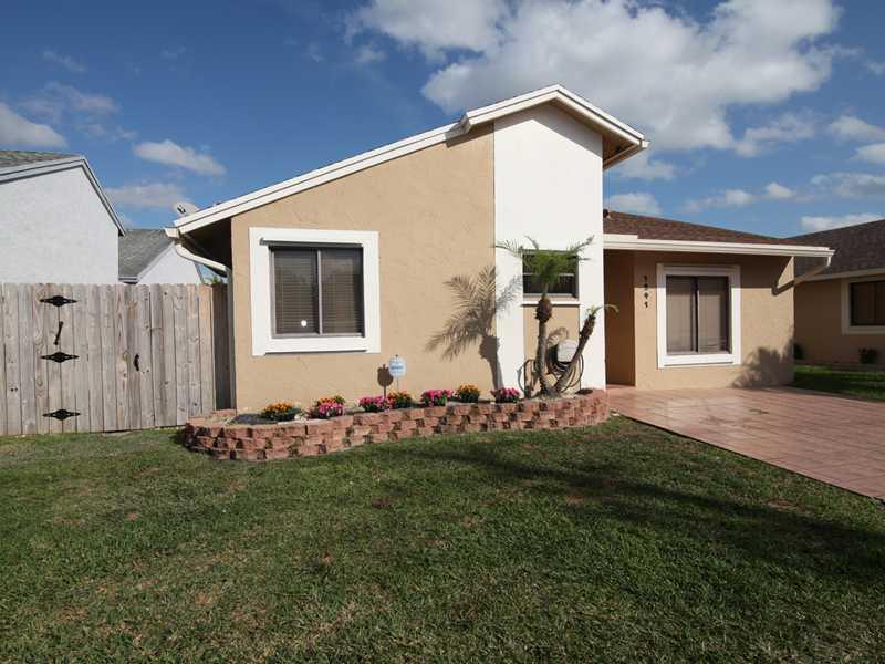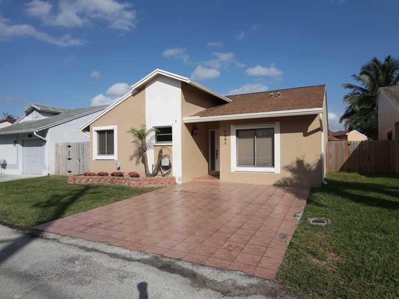 FANTASTIC 3 BED 2 BATH HOME IN DESIRABLE COMMUNITY OF PEMBROKE LAKES. BEAUTIFUL OPEN KITCHEN OVERLOOKING LIVING ROOM W/ SS APPLIANCES, WOOD CABINETRY, CUSTOM PANTRY W/ PULLOUT SHELVES & UNDER CABINET LIGHTING. TILE THROUGHOUT MAIN LIVING AREAS & LAMINATE FLOORING IN BEDROOMS. OVERSIZED MASTER BEDROOM HAS WALK IN CLOSETS & SLIDING DOOR LEADING TO BACKYARD. RELAX OUTSIDE IN YOUR RESORT STYLE BACKYARD. SALTWATER POOL W/ FOUNTAINS, BEACH ENTRANCE & SITTING AREAS IN POOL. GREAT FOR ENTERTAINING! LOW HOA!