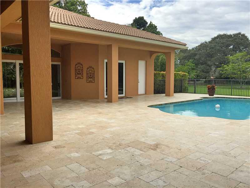 Tucked away in the middle of Davie's Finest Communities. This home features 5 bedrooms 3.5 baths with pool. Courtyard style home, with over 3,000 sf of patio living. Main area is 3551,garage which can have car lift is 556 sq ft, covered entry 492, and covered patio is 1428. House sits on 1.25 acres. Gourmet kitchen with stainless appliances. Seperate Guest suite with it's own entry. A SCHOOLS. Easy access to all highways, 595 and 1-75 and sawgrass. Quiet living close to the city